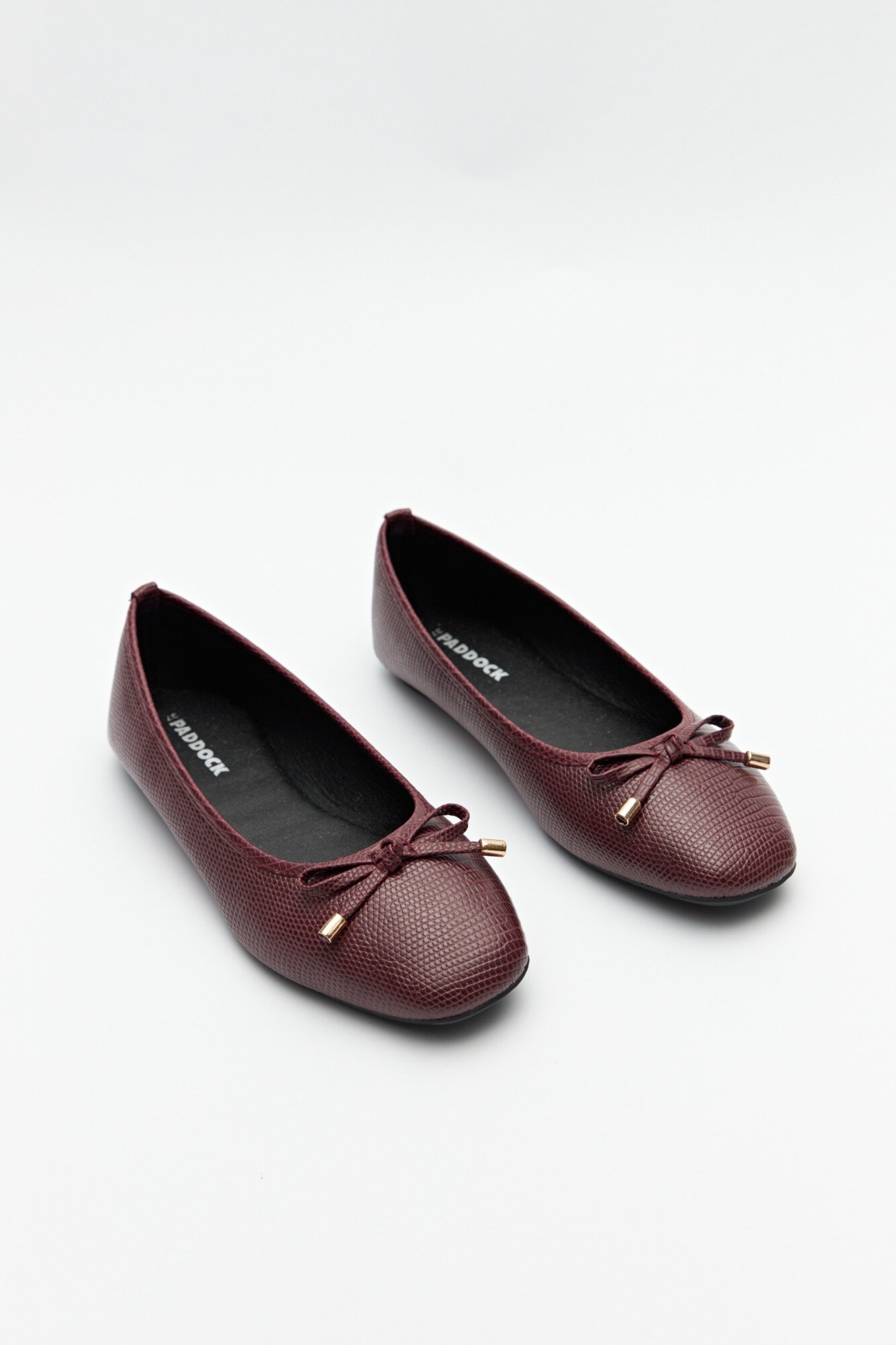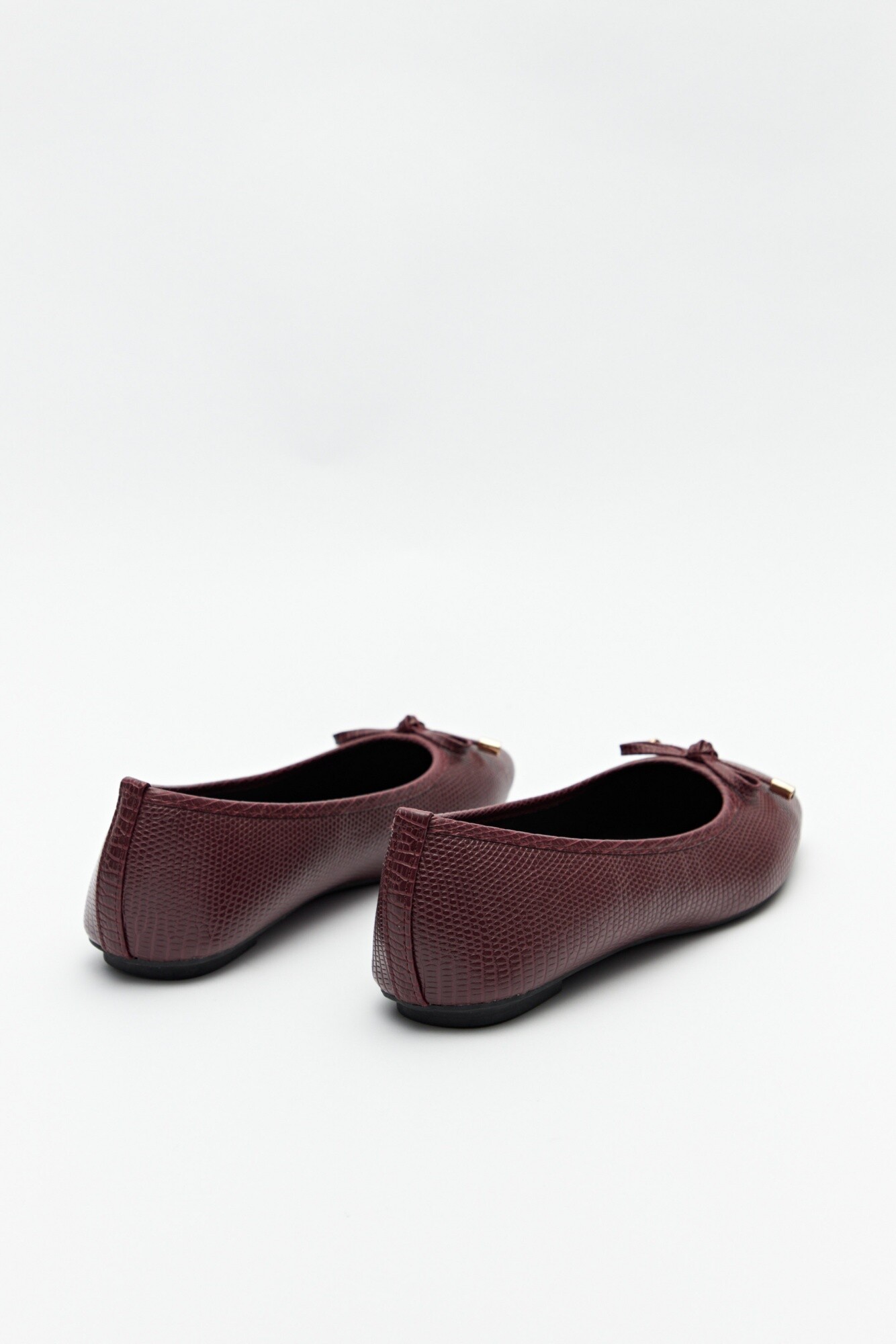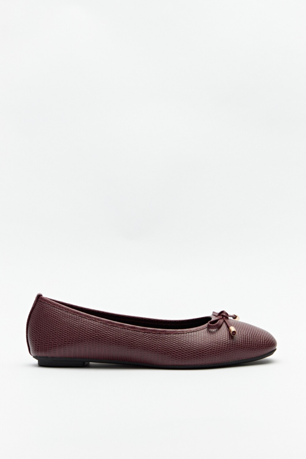 Balerina en símil cuero texturizado con aplique de moña y delicados detalles metálicos. Suela súper confortable.