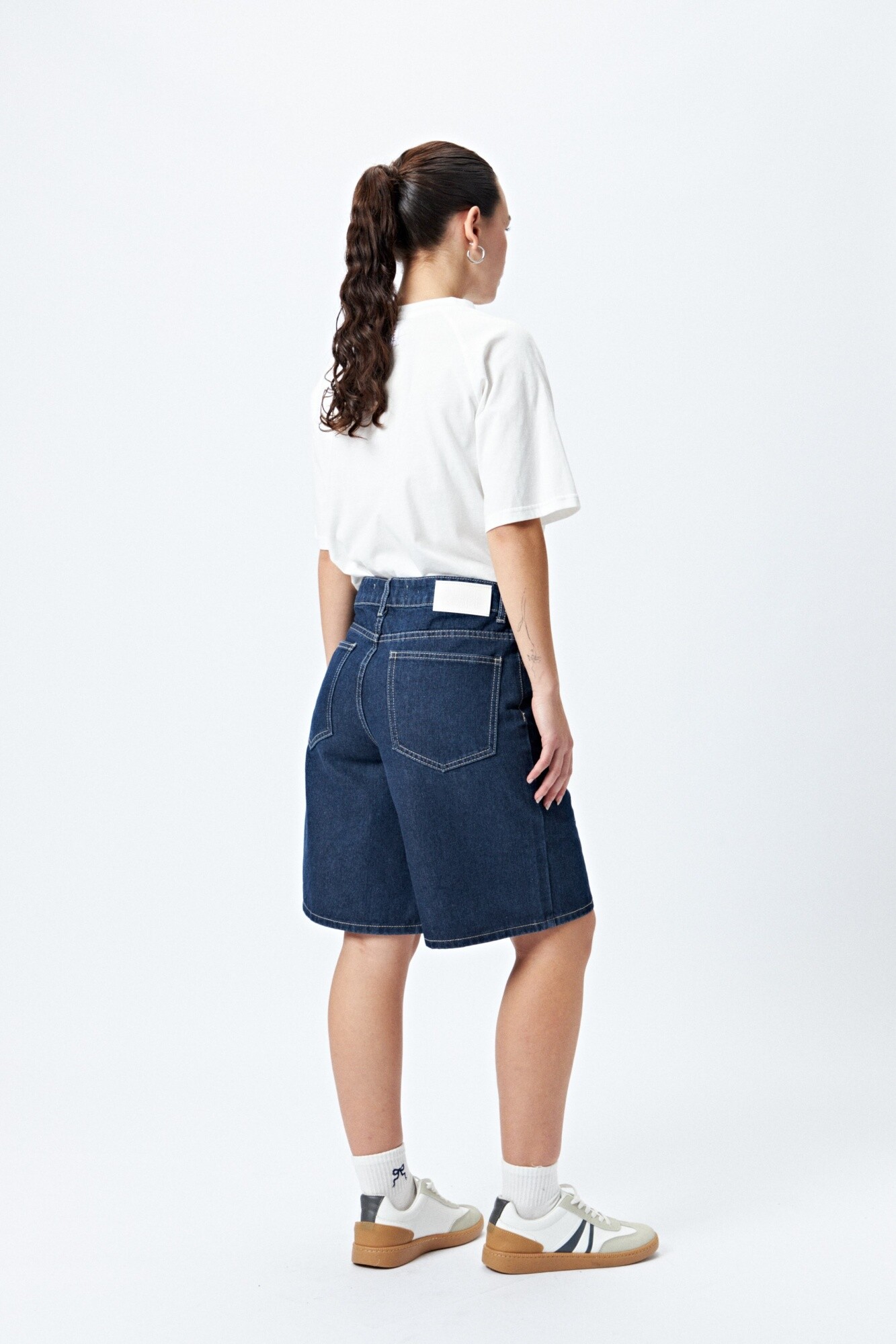 Bermuda de denim con fit relajado y largo a la rodilla, una prenda versátil que mezcla lo casual con lo urbano. Su diseño limpio y minimalista la convierte en un básico que se adapta a diferentes estilos. Un infaltable para quienes buscan comodidad sin perder estilo.