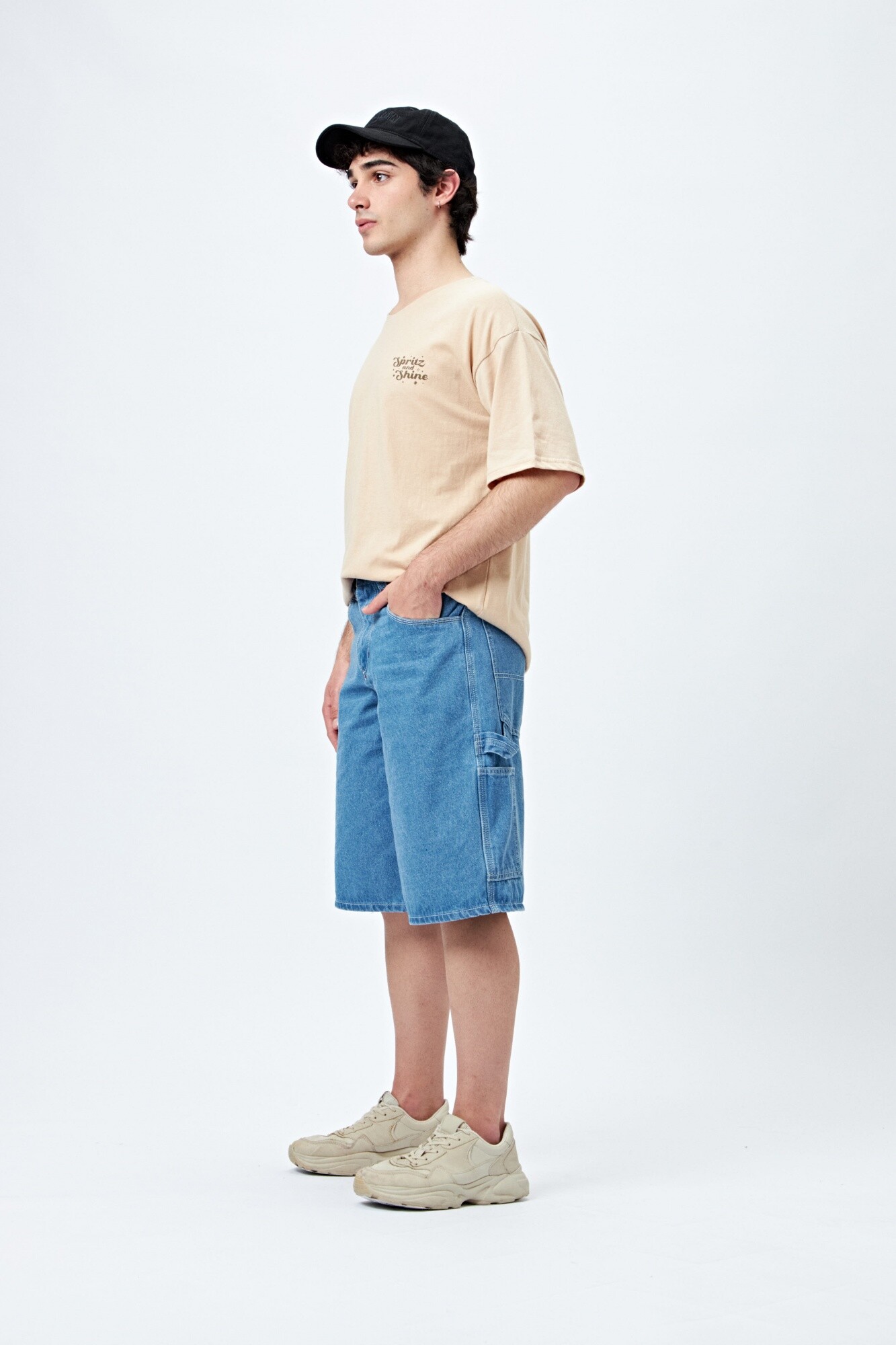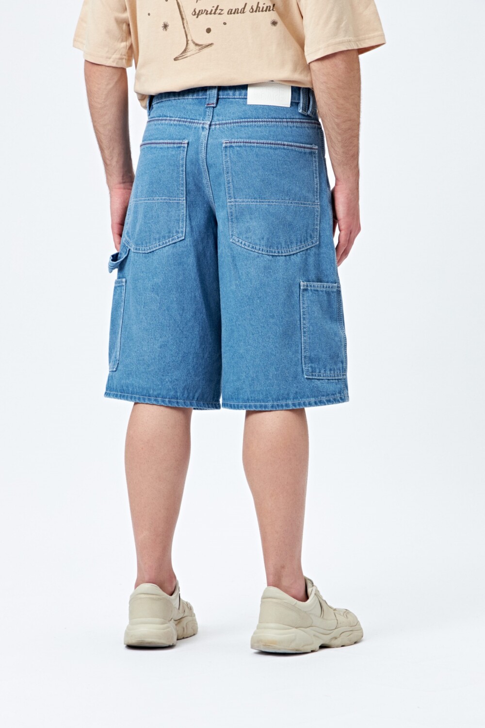 Bermuda carpenter de denim con fit relaxed y largo por encima de la rodilla. Con costuras visibles y múltiples bolsillos funcionales, aporta ese aire utilitario que la hace trendy y canchera. Una prenda sin género, pensada para todos los estilos.