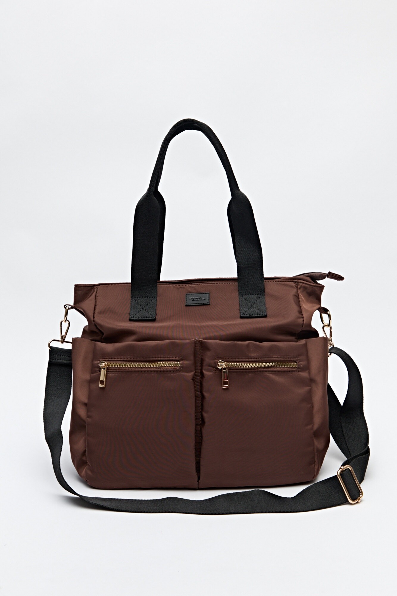 Cartera estilo tote confeccionada en nylon, pensada para acompañarte en la rutina diaria con practicidad y estilo. Su diseño amplio incluye bolsillos frontales con cierre metálico, asas resistentes y correa regulable y desmontable para llevar al hombro o cruzada. Perfecta para sumar un toque urbano y funcional a tus looks.