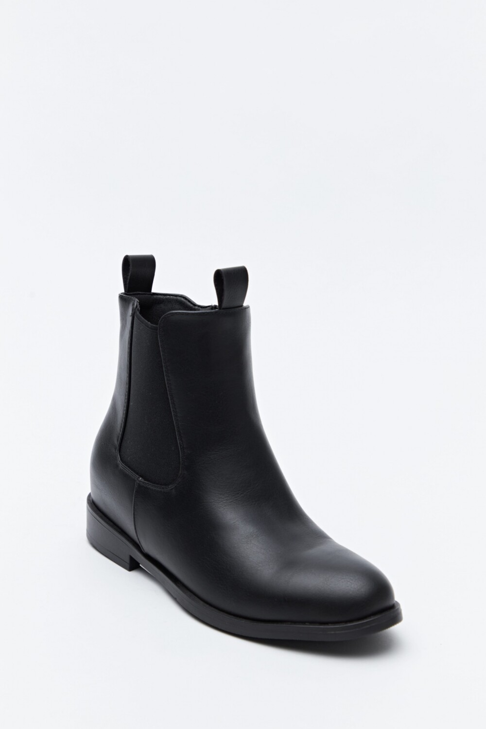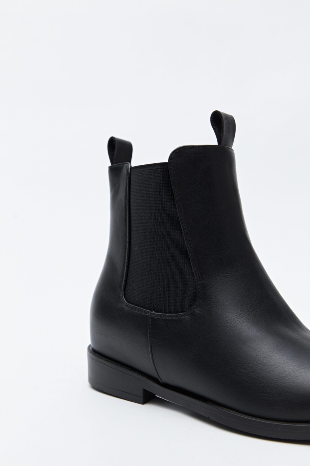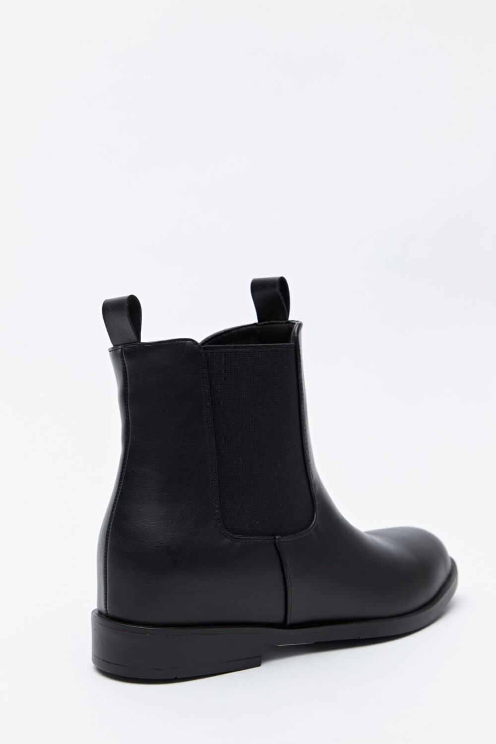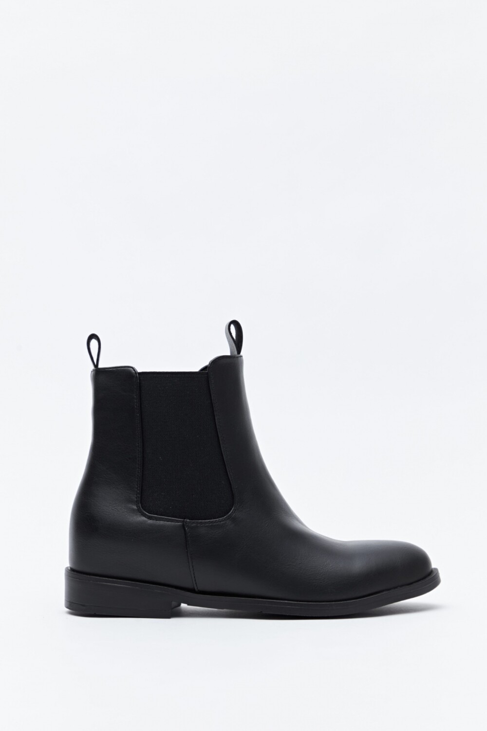 Bota tipo chelsea de caña media confeccionada en símil cuero, con líneas limpias y diseño minimalista. Los laterales con paneles elastizados facilitan el calce y aportan comodidad, mientras que las presillas superiores refuerzan su impronta funcional. La suela baja y de perfil simple la convierte en una opción versátil y atemporal, ideal para acompañar desde looks de oficina hasta outfits más relajados de todos los días.