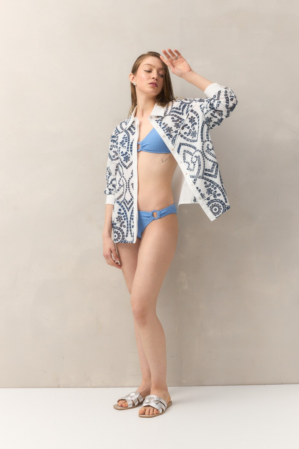 Bottom de bikini confeccionado en tela diferenciada con textura y detalle de aro lateral que suma un toque canchero. Su calce medio realza la silueta y acompaña con comodidad, ideal para completar un conjunto moderno y actual.