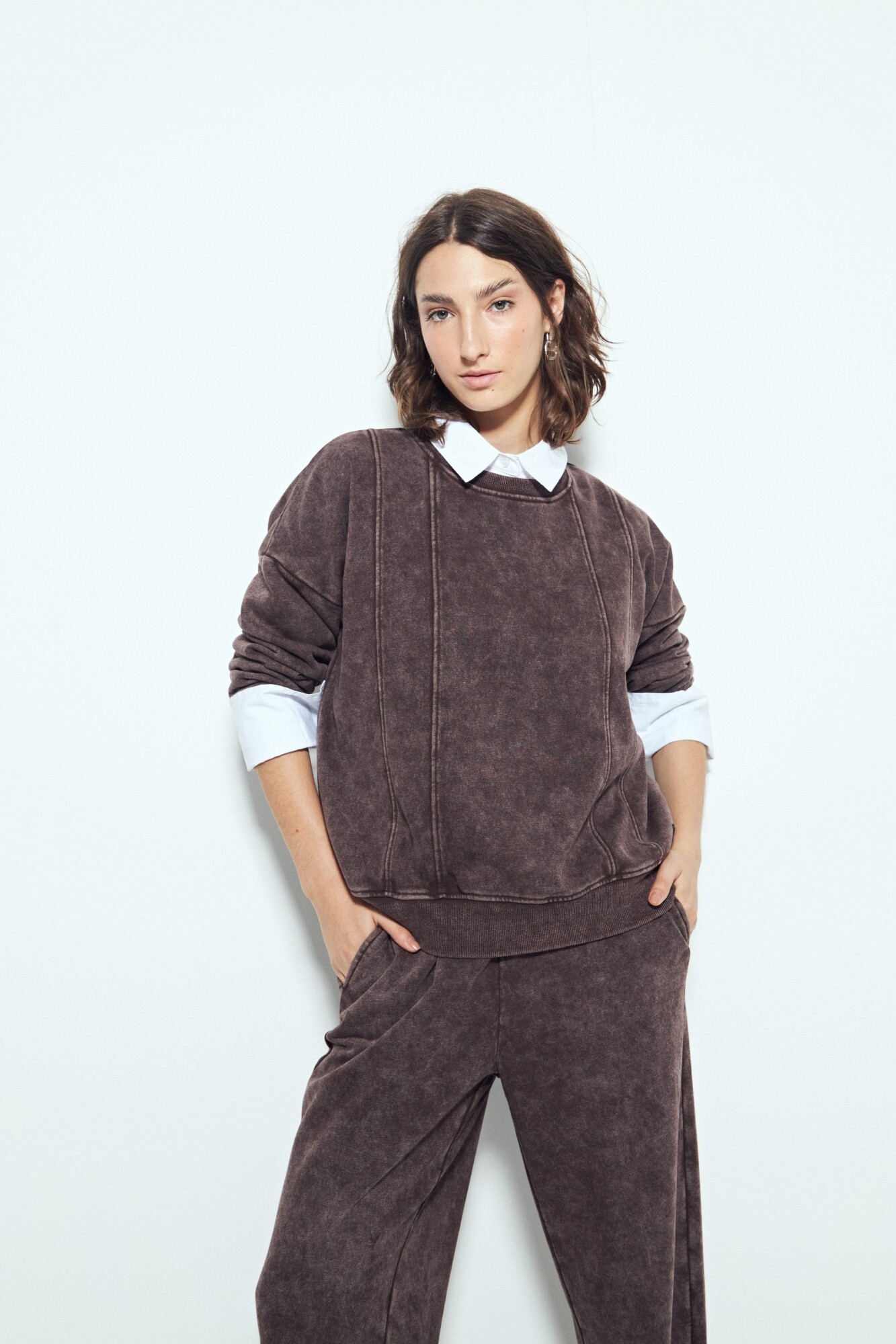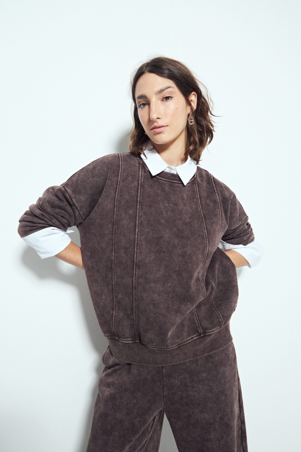 Buzo de calce relajado con un marcado efecto lavado que aporta un look desgastado y contemporáneo. El diseño se destaca por las costuras verticales a la vista, que estilizan la silueta y suman un detalle diferencial de inspiración urbana. Su estructura cómoda y versátil lo convierte en una prenda ideal para elevar outfits diarios con un aire moderno y descontracturado. Una pieza clave para elevar cualquier look.