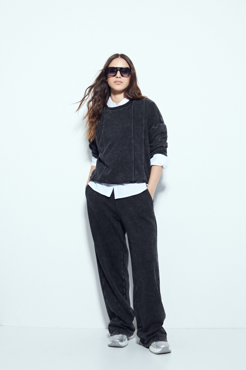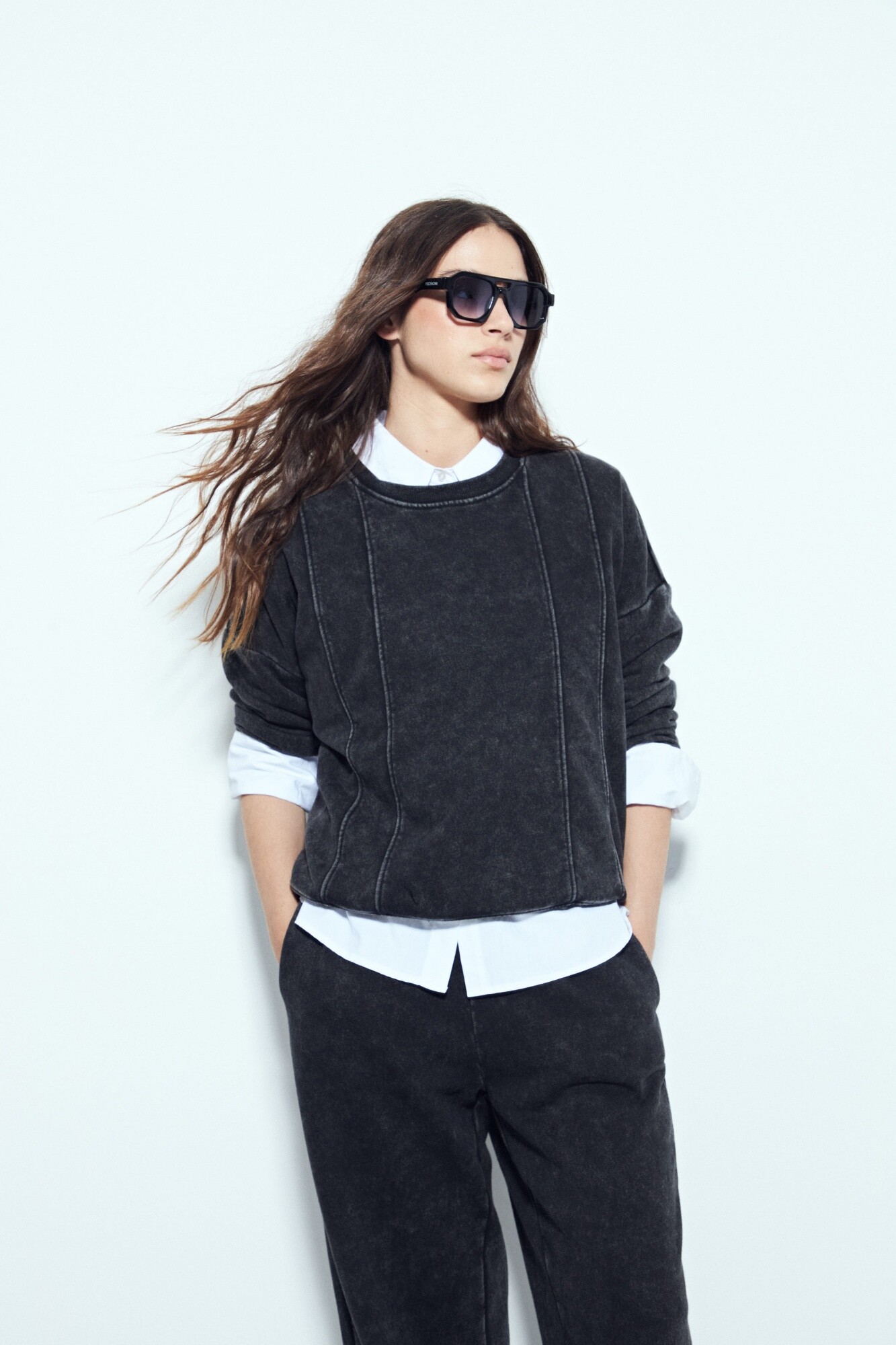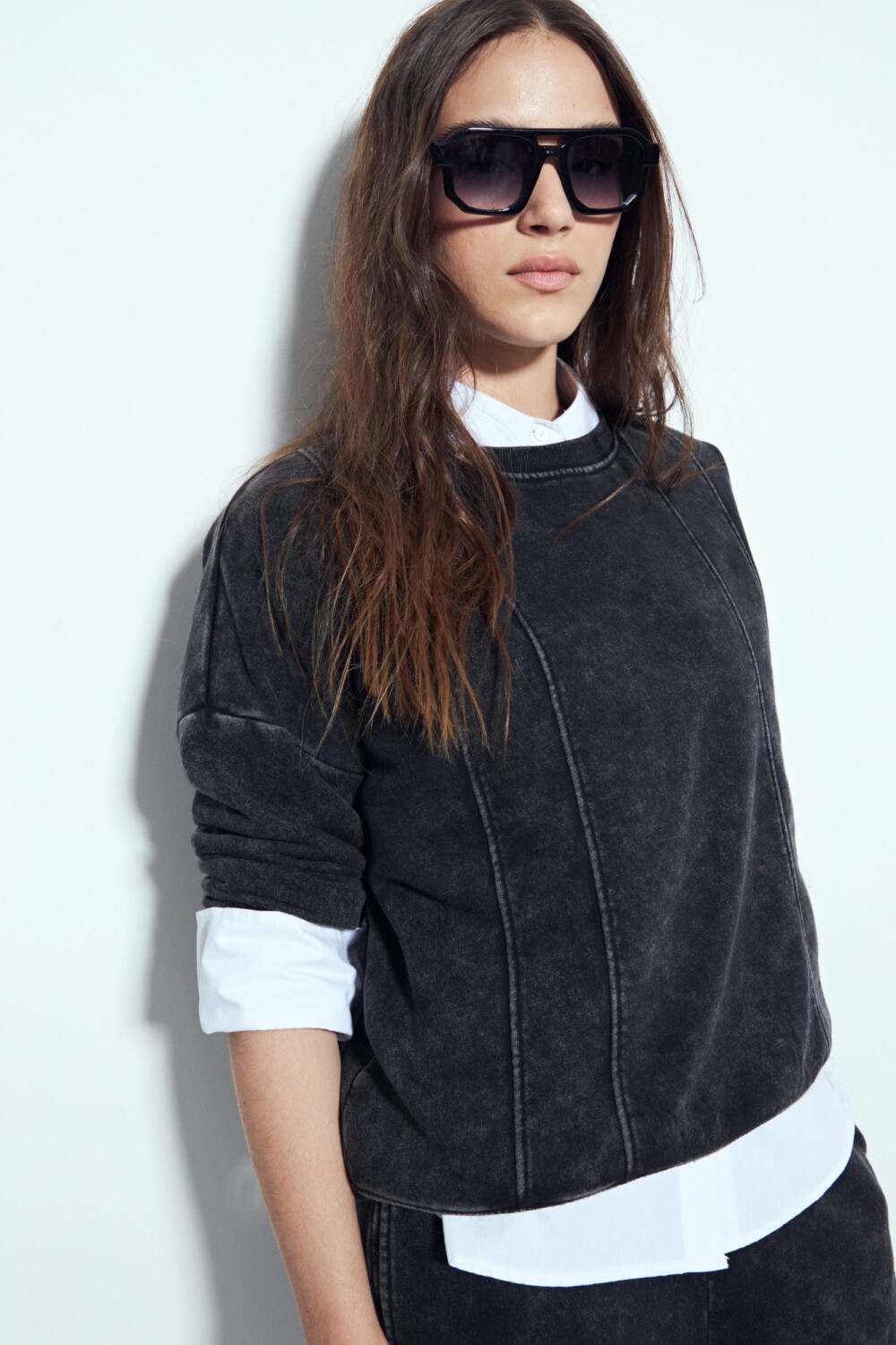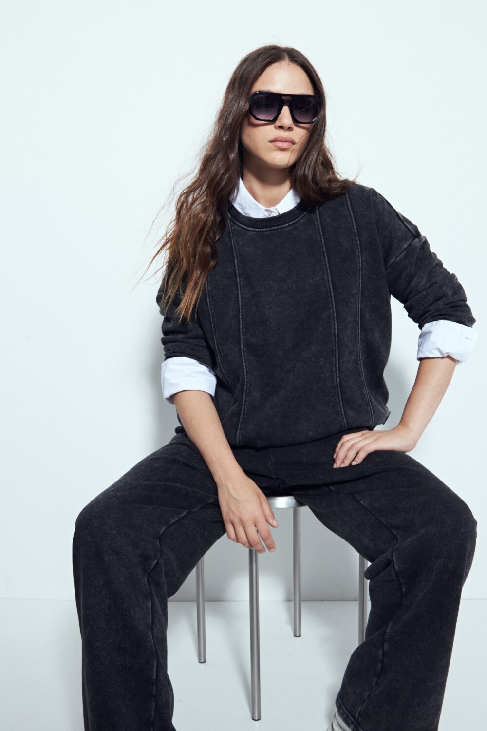 Buzo de calce relajado con un marcado efecto lavado que aporta un look desgastado y contemporáneo. El diseño se destaca por las costuras verticales a la vista, que estilizan la silueta y suman un detalle diferencial de inspiración urbana. Su estructura cómoda y versátil lo convierte en una prenda ideal para elevar outfits diarios con un aire moderno y descontracturado. Una pieza clave para elevar cualquier look.