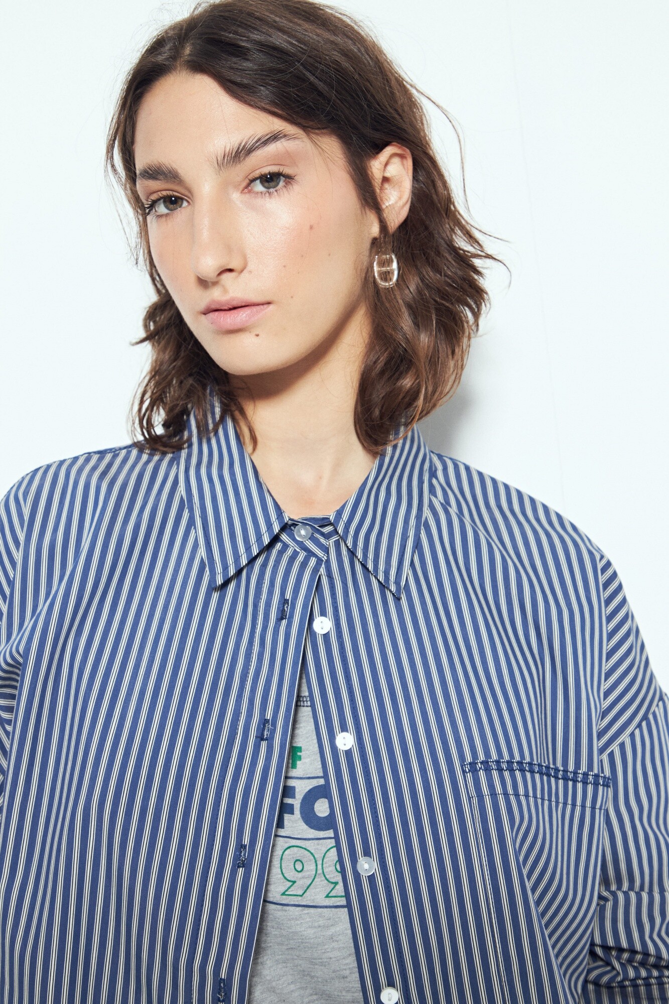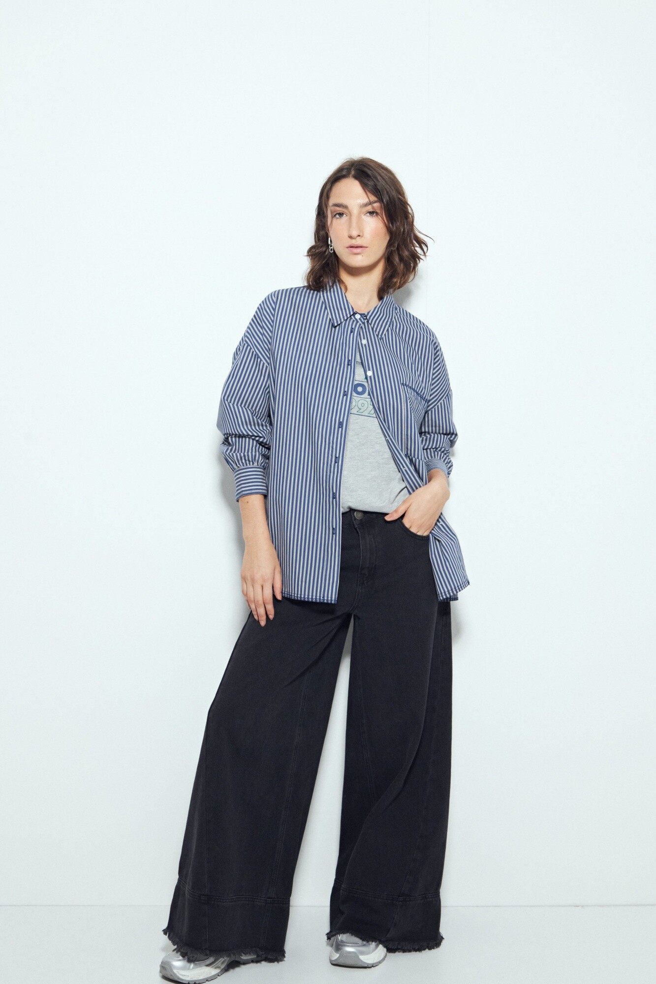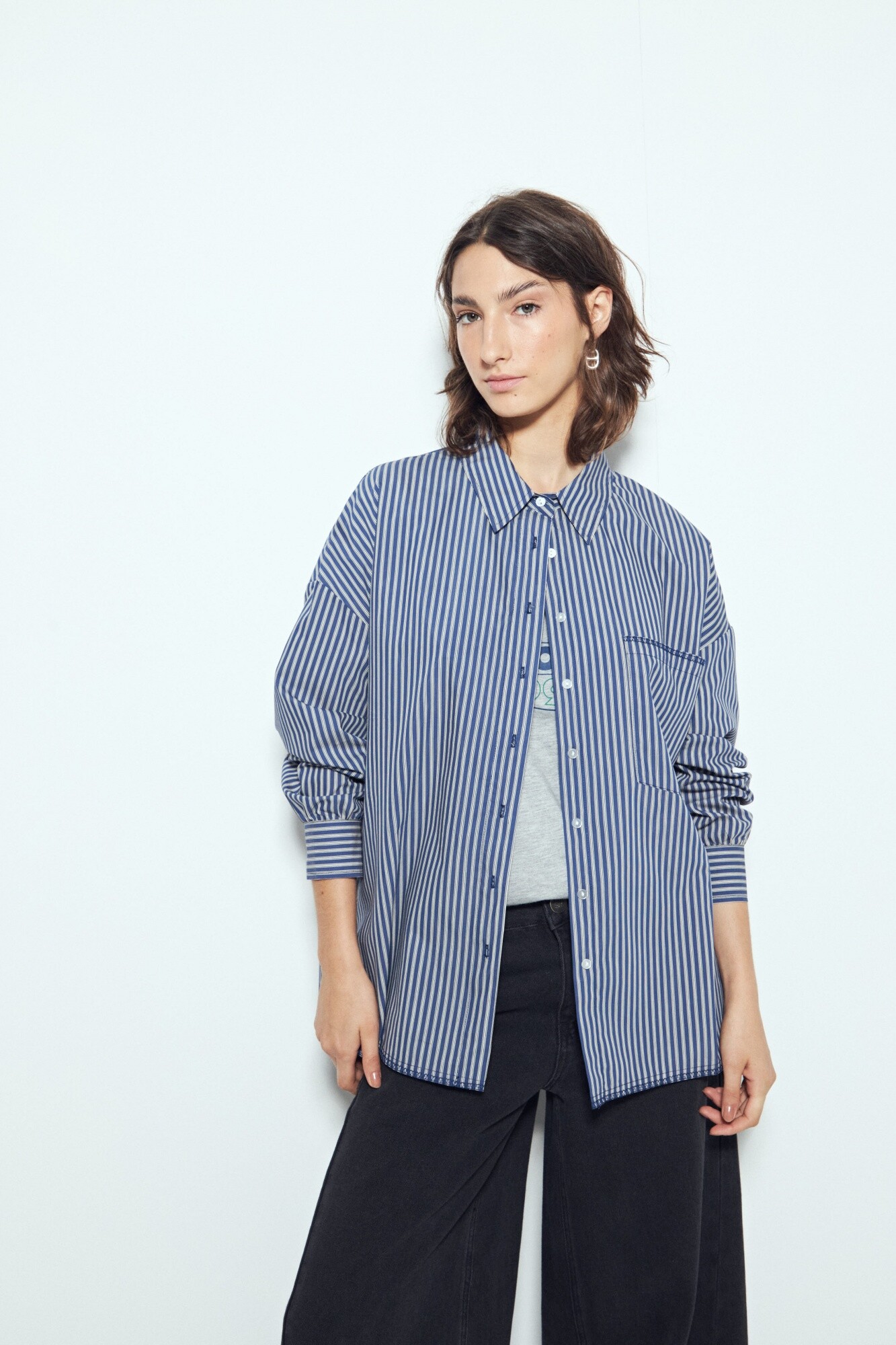 Camisa de silueta amplia con caída fluida, pensada para un look effortless y actual. El diseño a rayas verticales estiliza visualmente y refuerza ese mix entre sastrero y urbano que funciona tanto para outfits de oficina relajada como para estilismos más casuales. Presenta cuello camisero clásico, cierre frontal con botones y bolsillo aplicado que suma un detalle funcional. Ideal para usar sola o como sobrecamisa, es una prenda versátil y en tendencia, clave para elevar cualquier look sin esfuerzo.