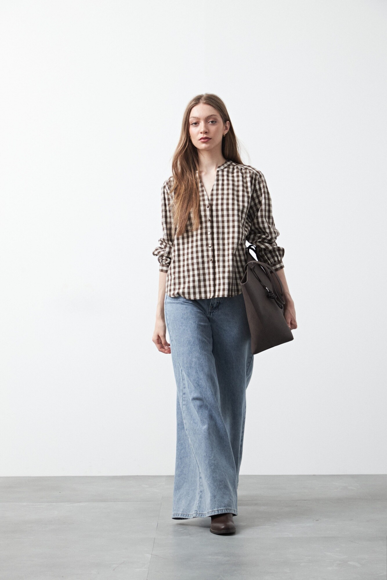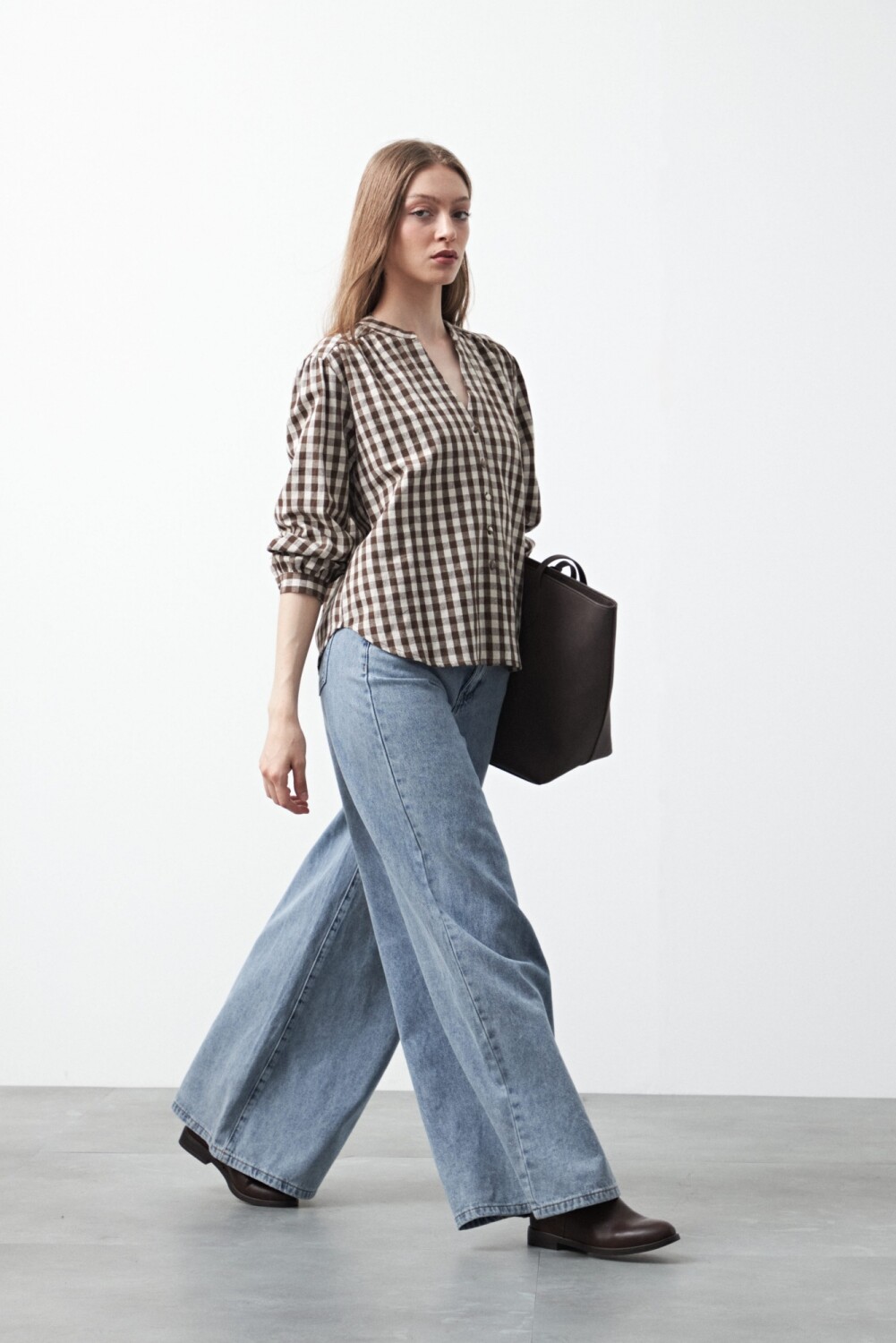 El patrón vichy suma personalidad y textura visual, ideal para equilibrar denim, sastrería o incluso prendas más amplias. Las mangas largas con puño y el calce levemente holgado la convierten en una opción versátil para usar por dentro o por fuera, adaptándose a looks de oficina o propuestas más descontracturadas.