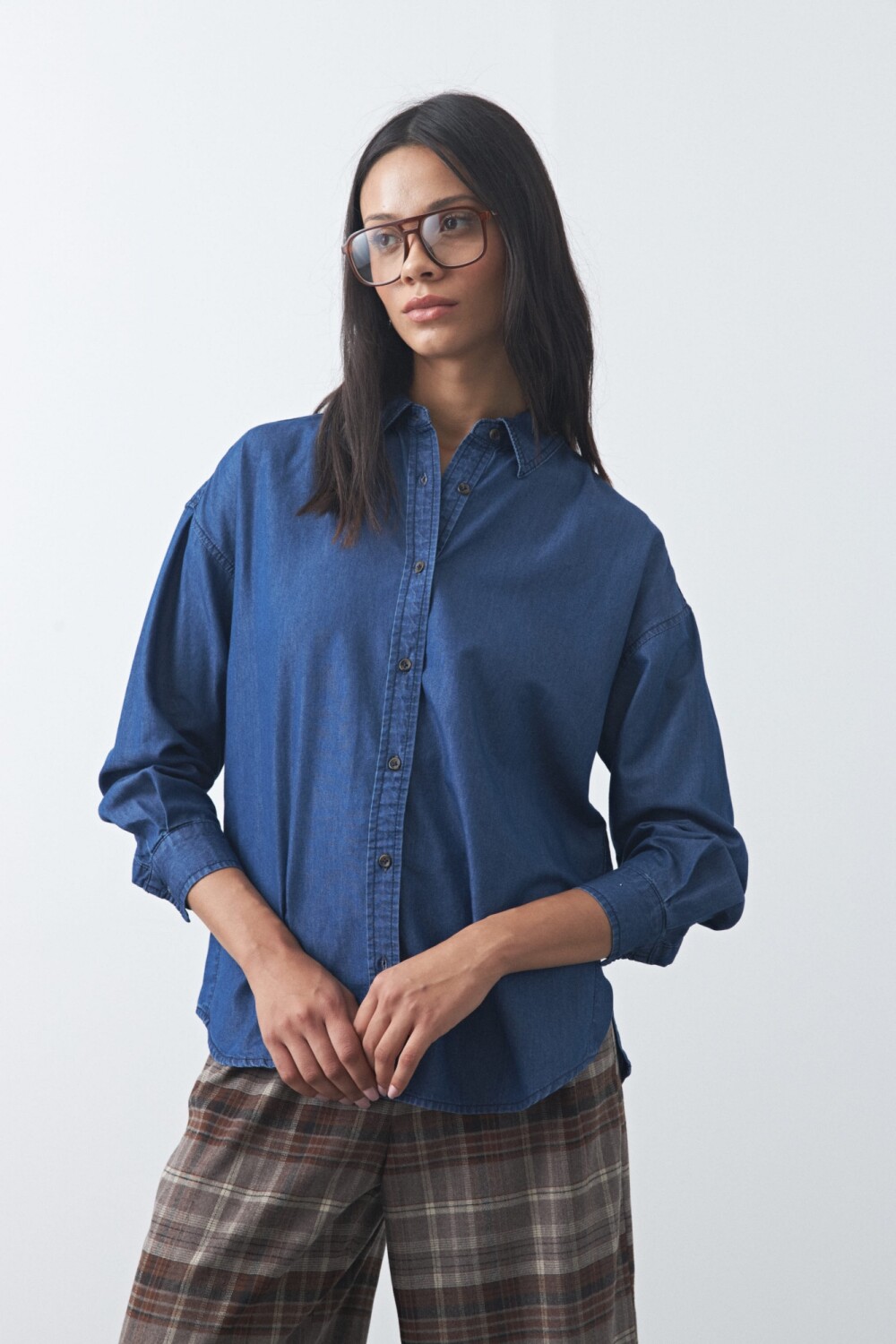 Camisa de jean en tencel de caída suave y tacto liviano, ideal para un look relajado con impronta atemporal. El diseño de silueta amplia, hombros levemente caídos y cartera frontal con botones refuerza su estilo canchero y versátil. El ruedo curvo con tajos laterales y el pliegue en espalda aportan movimiento y comodidad, perfecta para usar sola o como sobrecamisa.