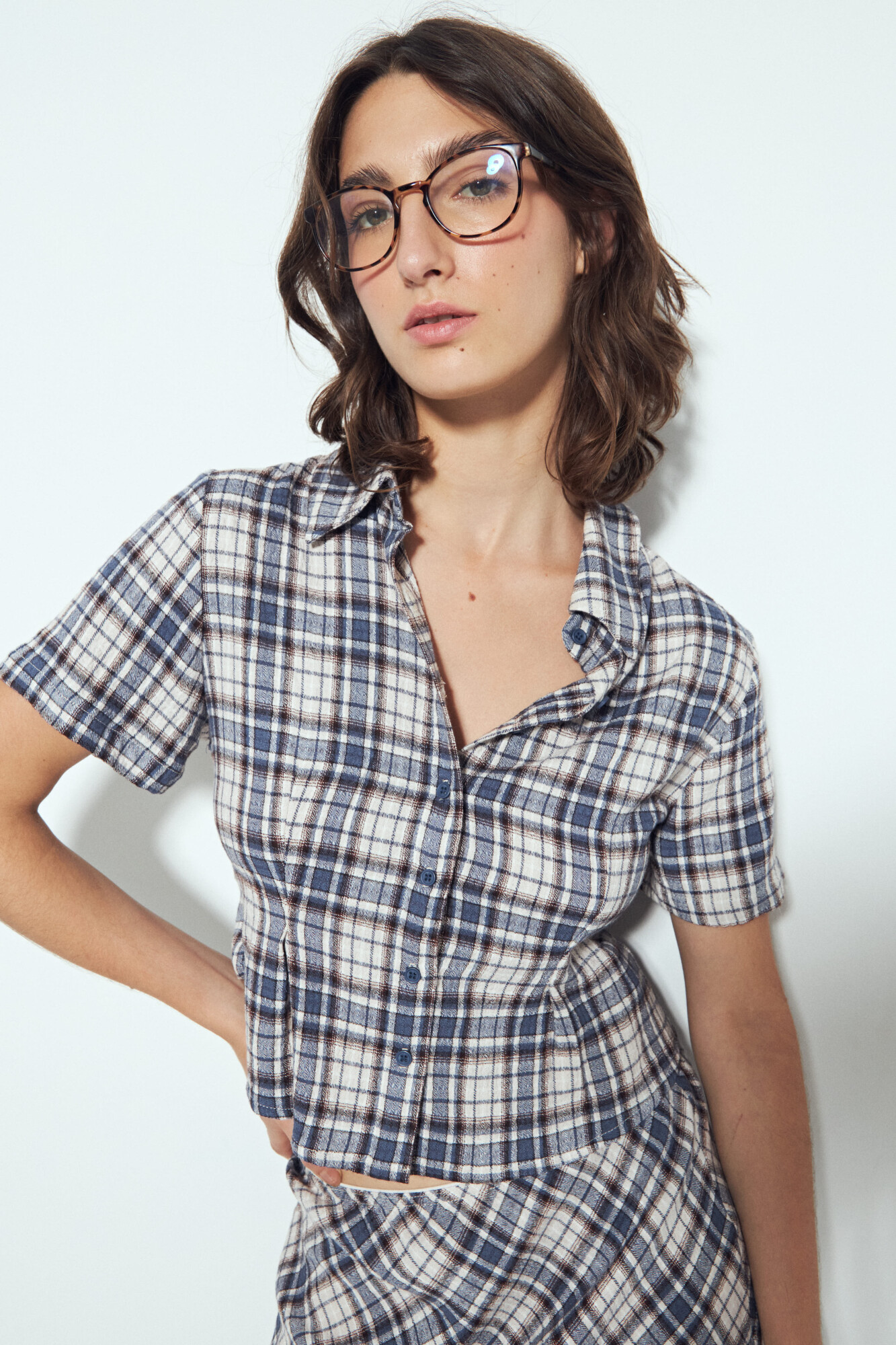 Camisa de manga corta a cuadros con diseño entallado que acompaña la silueta sin perder comodidad. Su confección en tejido con leve elasticidad aporta un calce prolijo y confortable, ideal para looks urbanos y actuales. Un básico renovado que se adapta tanto a propuestas relajadas como a combinaciones más pulidas, clave para elevar cualquier look.