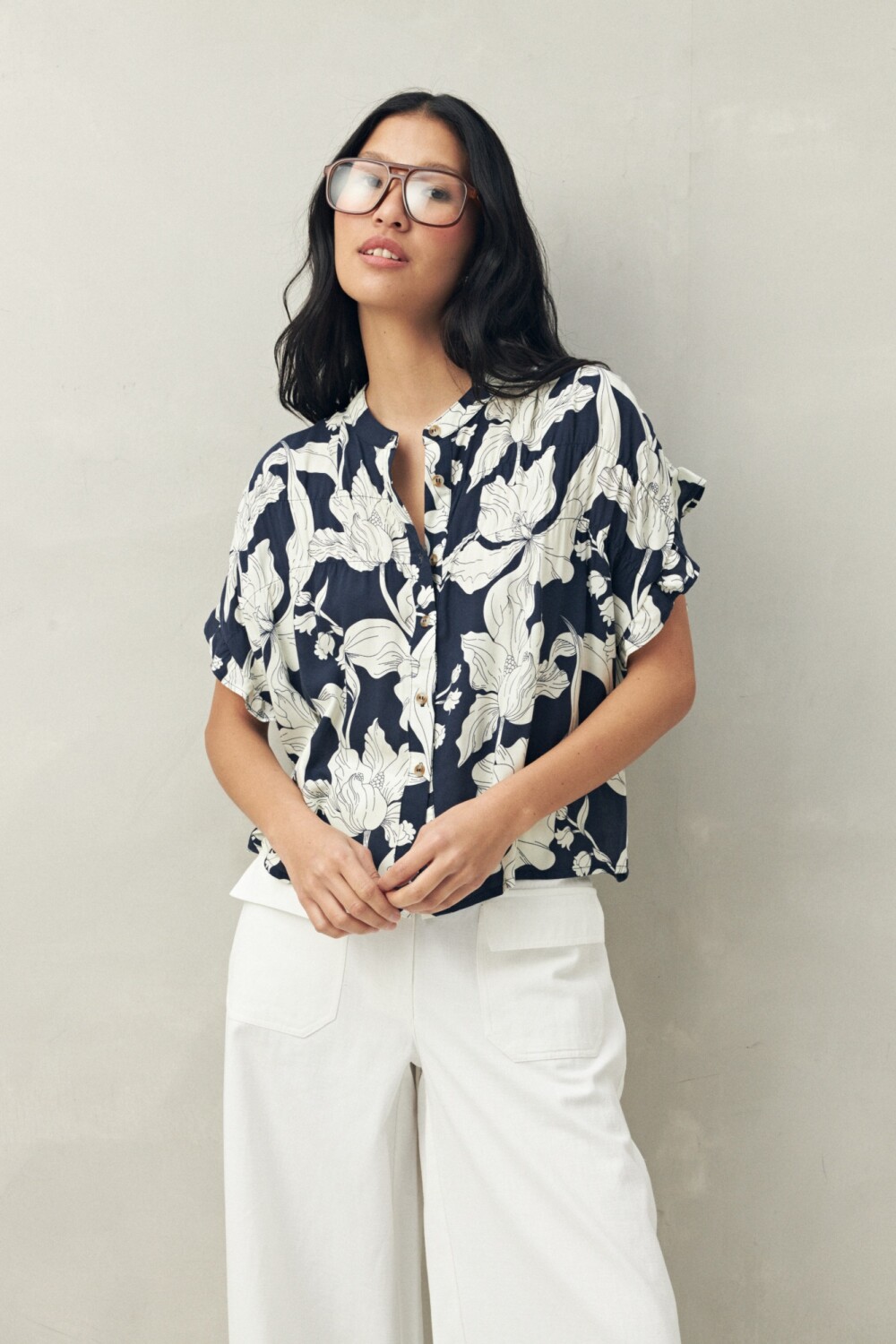Confeccionada en viscosa liviana que aporta un movimiento fluido y fresco, ideal para los días cálidos. Su estampa le da personalidad y un aire contemporáneo, perfecta para combinar con jeans, pantalones amplios o shorts.