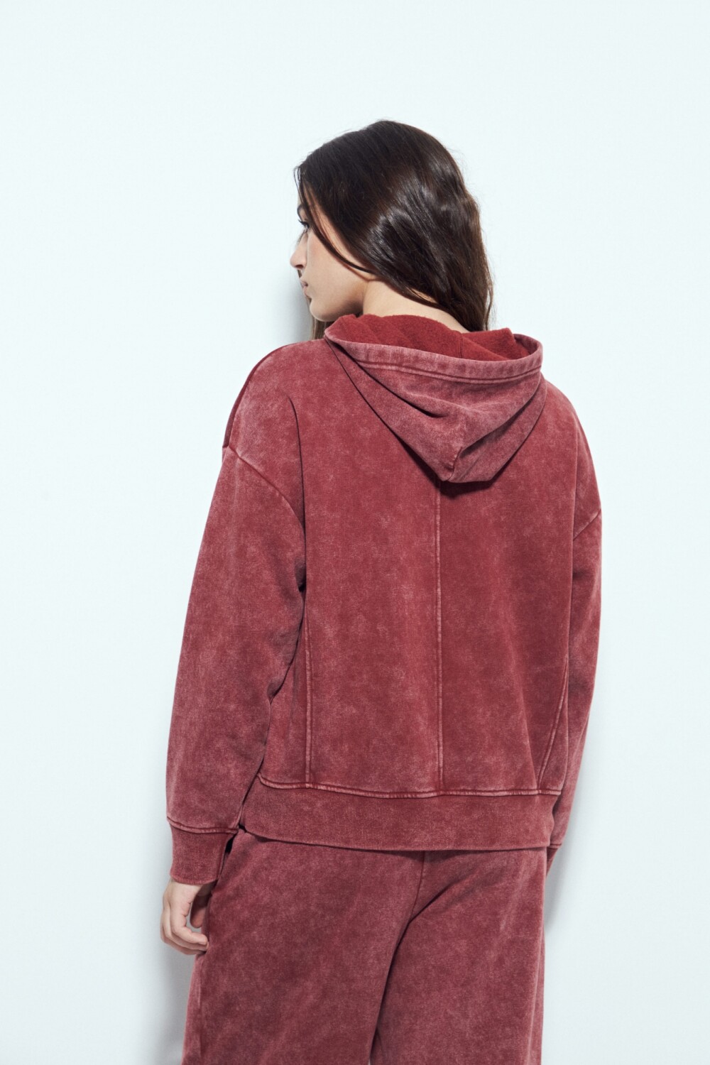 Buzo de calce relajado con estética urbana y un sutil efecto lavado que le aporta carácter y un look actual. Presenta capucha integrada, bolsillo frontal tipo canguro y terminaciones clásicas en puños y ruedo, logrando una silueta cómoda y versátil. La textura suave y el buen cuerpo del tejido lo convierten en una prenda ideal para el uso diario, perfecta para sumar actitud a outfits descontracturados. Un básico con personalidad, clave para elevar cualquier look.