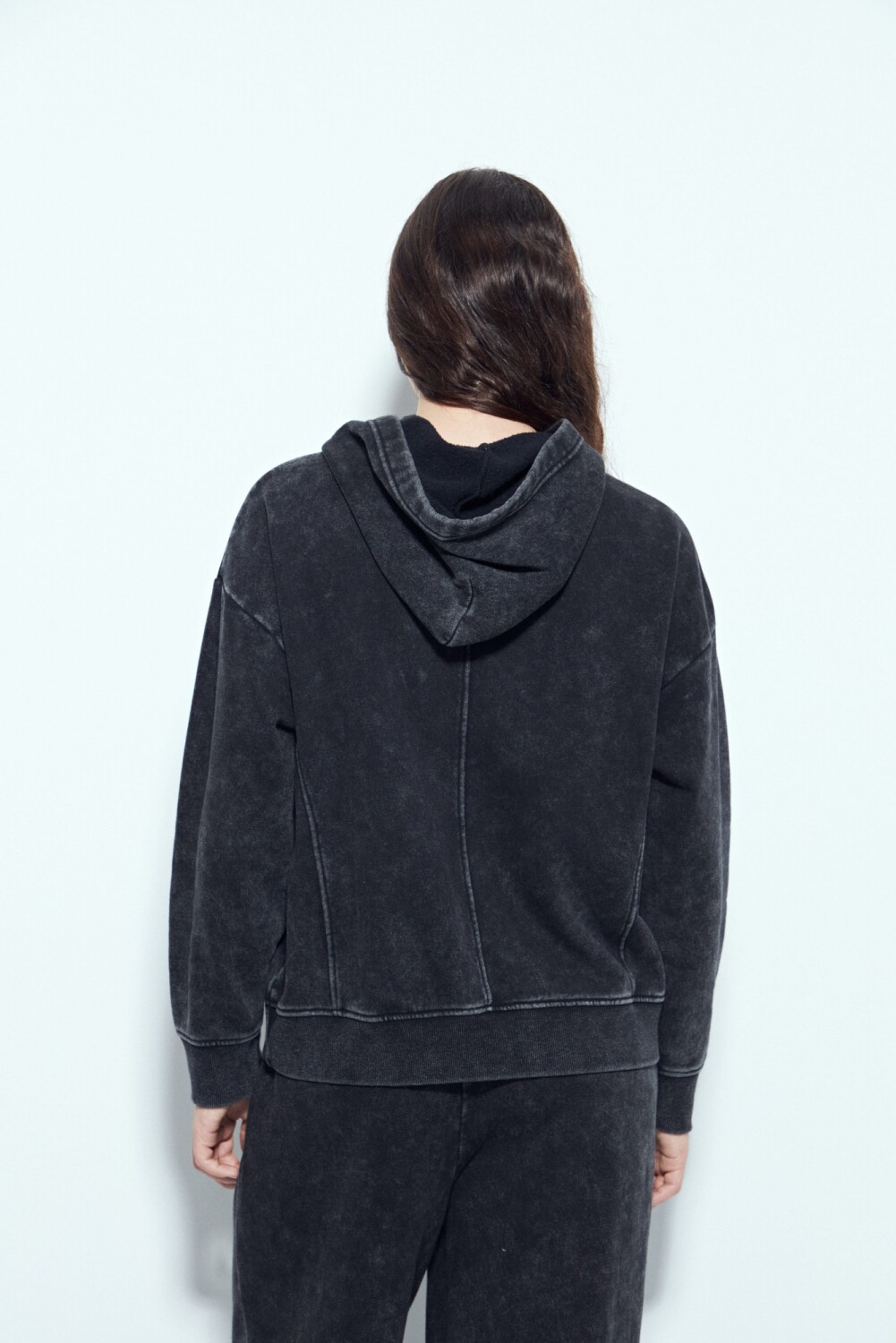 Buzo de calce relajado con estética urbana y un sutil efecto lavado que le aporta carácter y un look actual. Presenta capucha integrada, bolsillo frontal tipo canguro y terminaciones clásicas en puños y ruedo, logrando una silueta cómoda y versátil. La textura suave y el buen cuerpo del tejido lo convierten en una prenda ideal para el uso diario, perfecta para sumar actitud a outfits descontracturados. Un básico con personalidad, clave para elevar cualquier look.