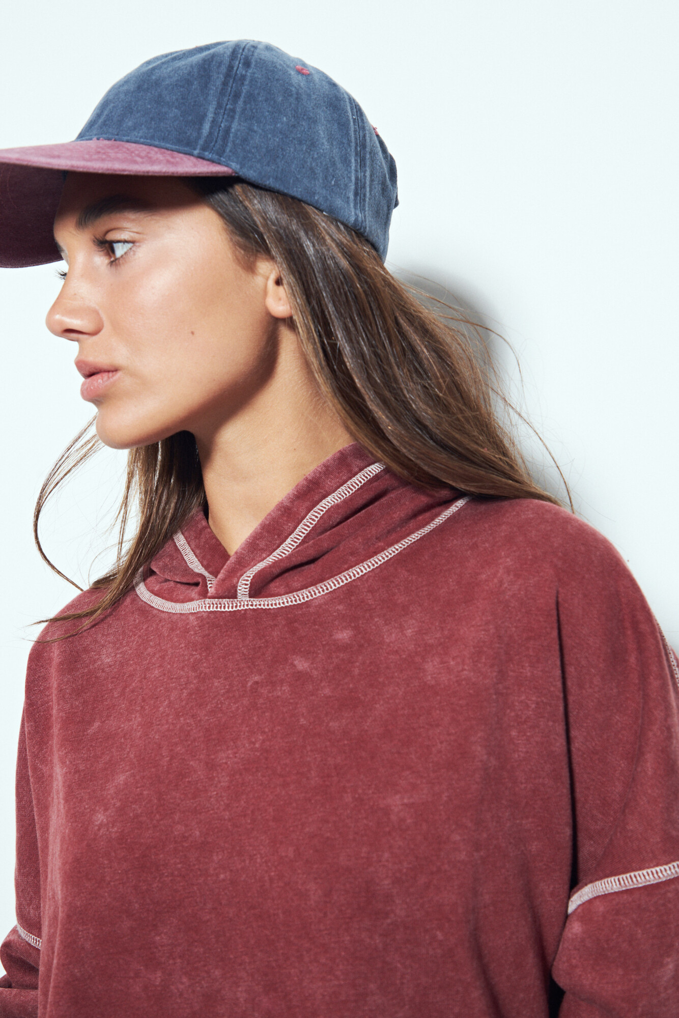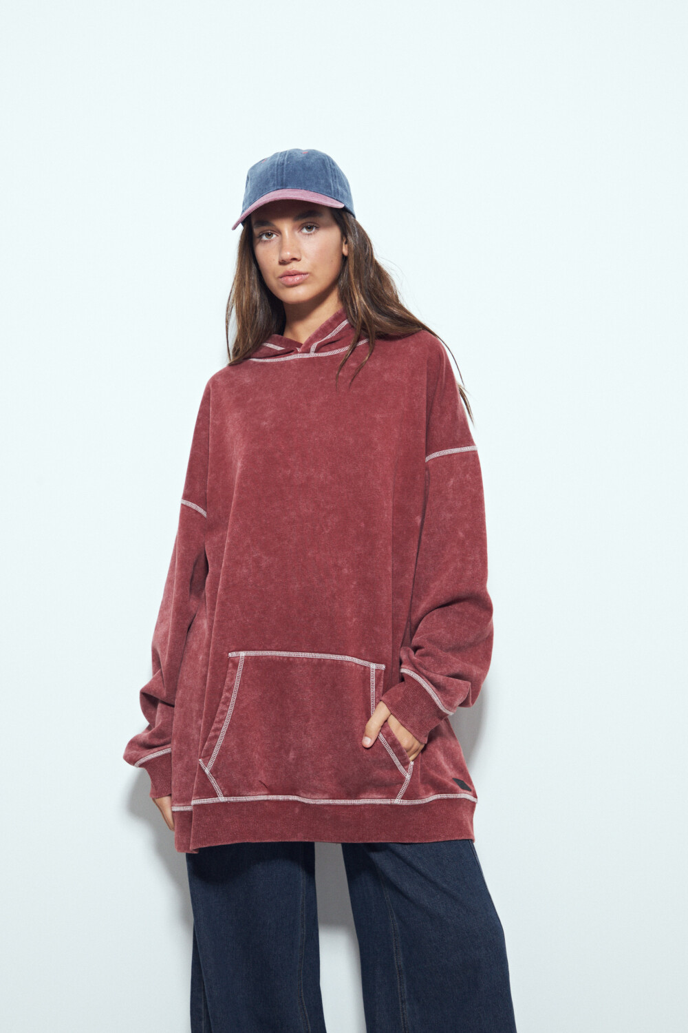 Buzo de calce relajado con estética urbana y un marcado efecto lavado que le aporta un look desgastado y actual. El diseño se destaca por las costuras a la vista en contraste, que suman carácter y un guiño utilitario, además del bolsillo frontal tipo canguro que refuerza su impronta casual. La capucha integrada completa una silueta cómoda y versátil, ideal para looks diarios con actitud. Una prenda clave para elevar cualquier look con un aire moderno y descontracturado.
