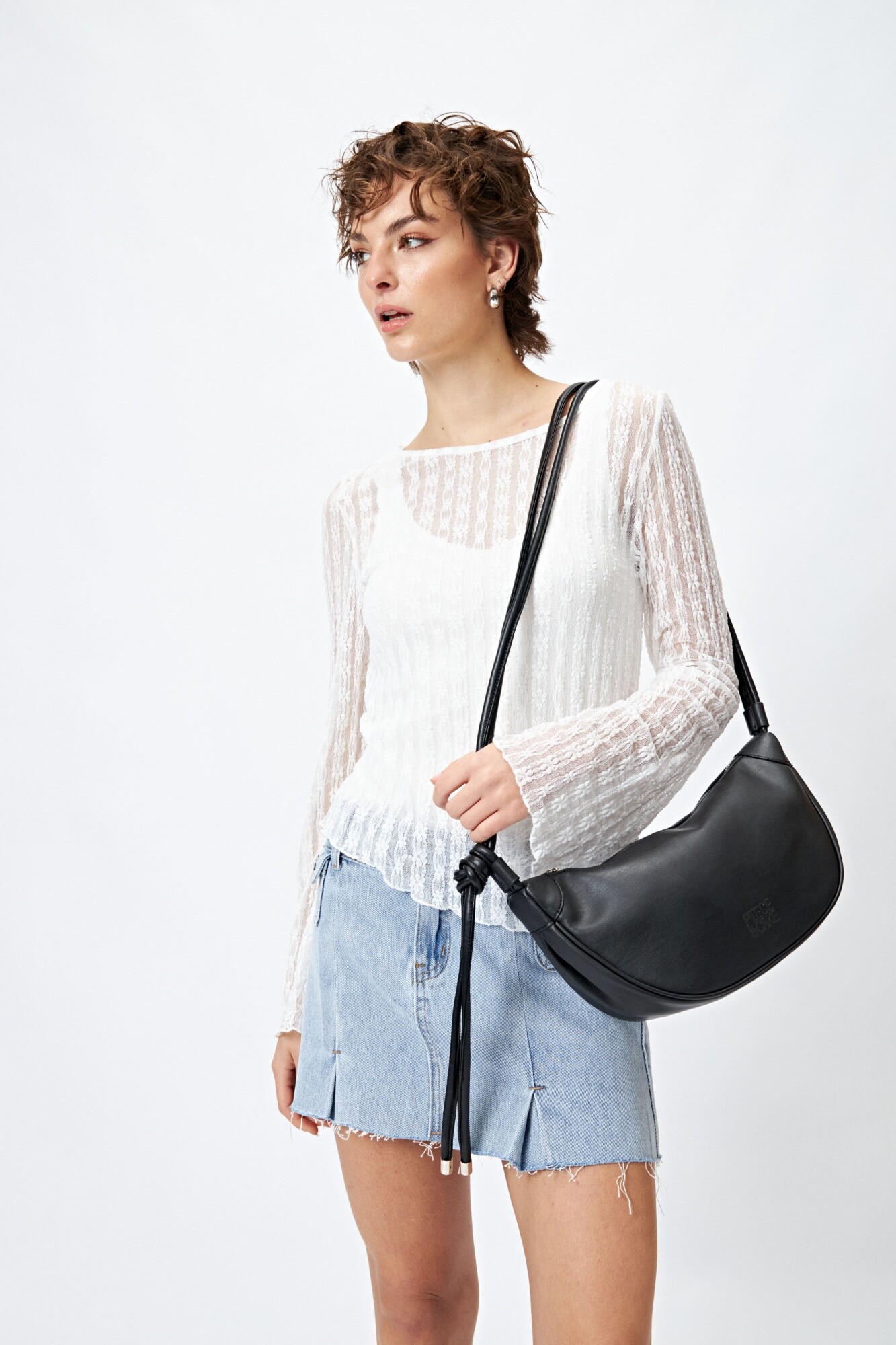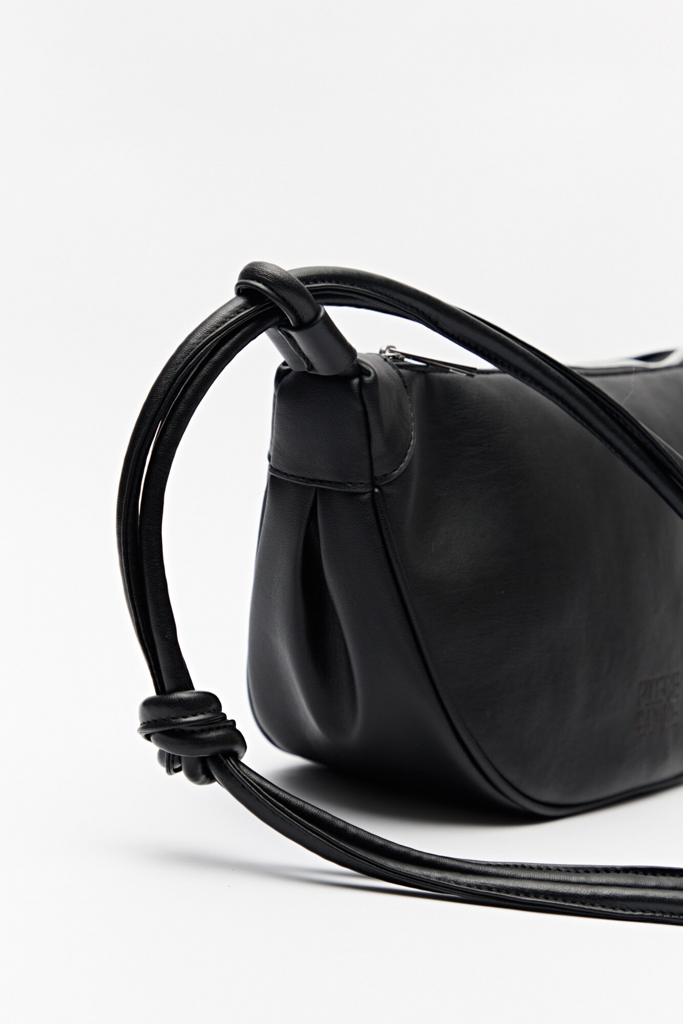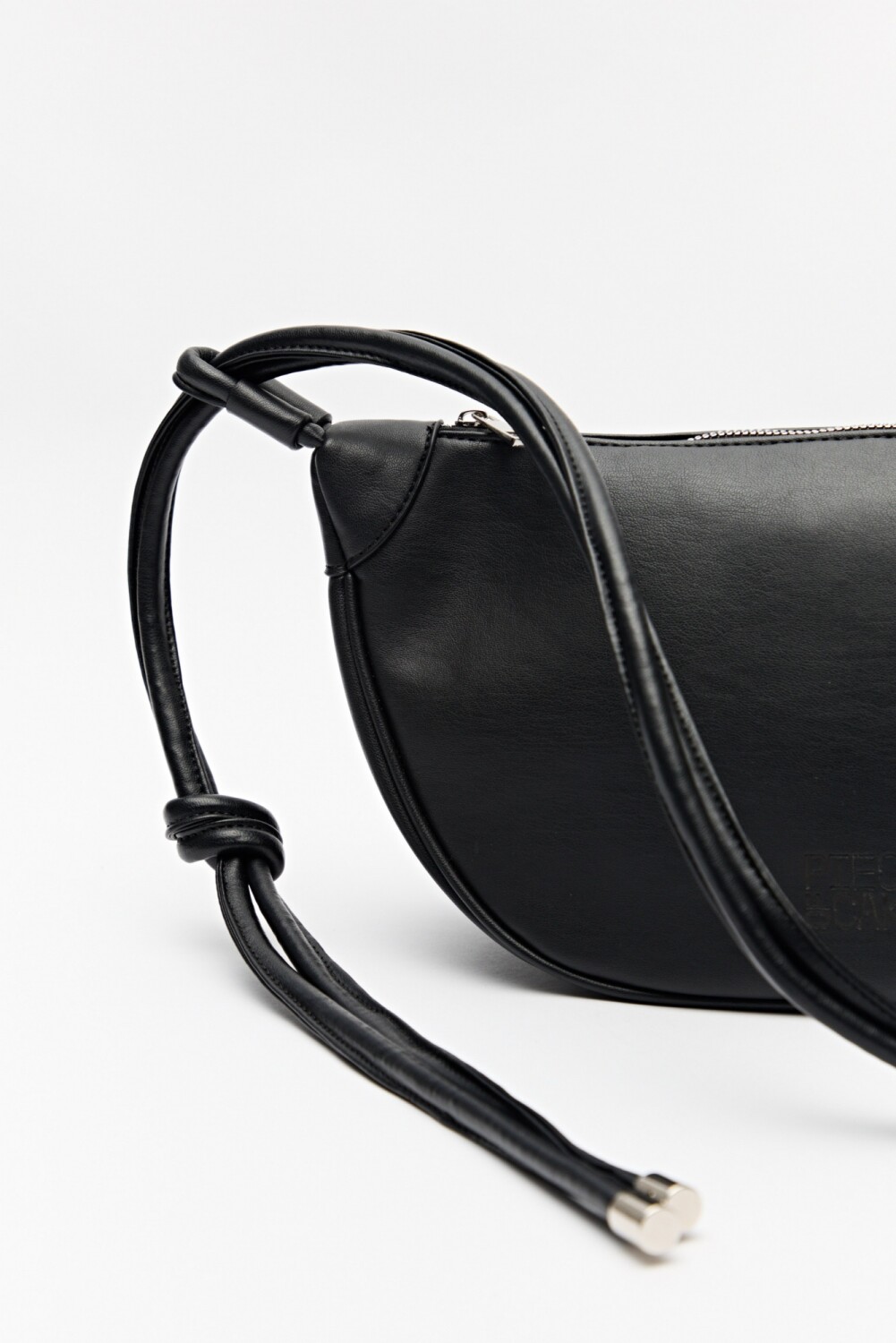 Cartera tipo bandolera en símil cuero, con formato alargado y correa regulable con nudos que aportan un detalle distintivo. Un accesorio versátil y trendy, perfecto para llevar cruzado o al hombro, sumando un toque moderno y canchero a cualquier look.