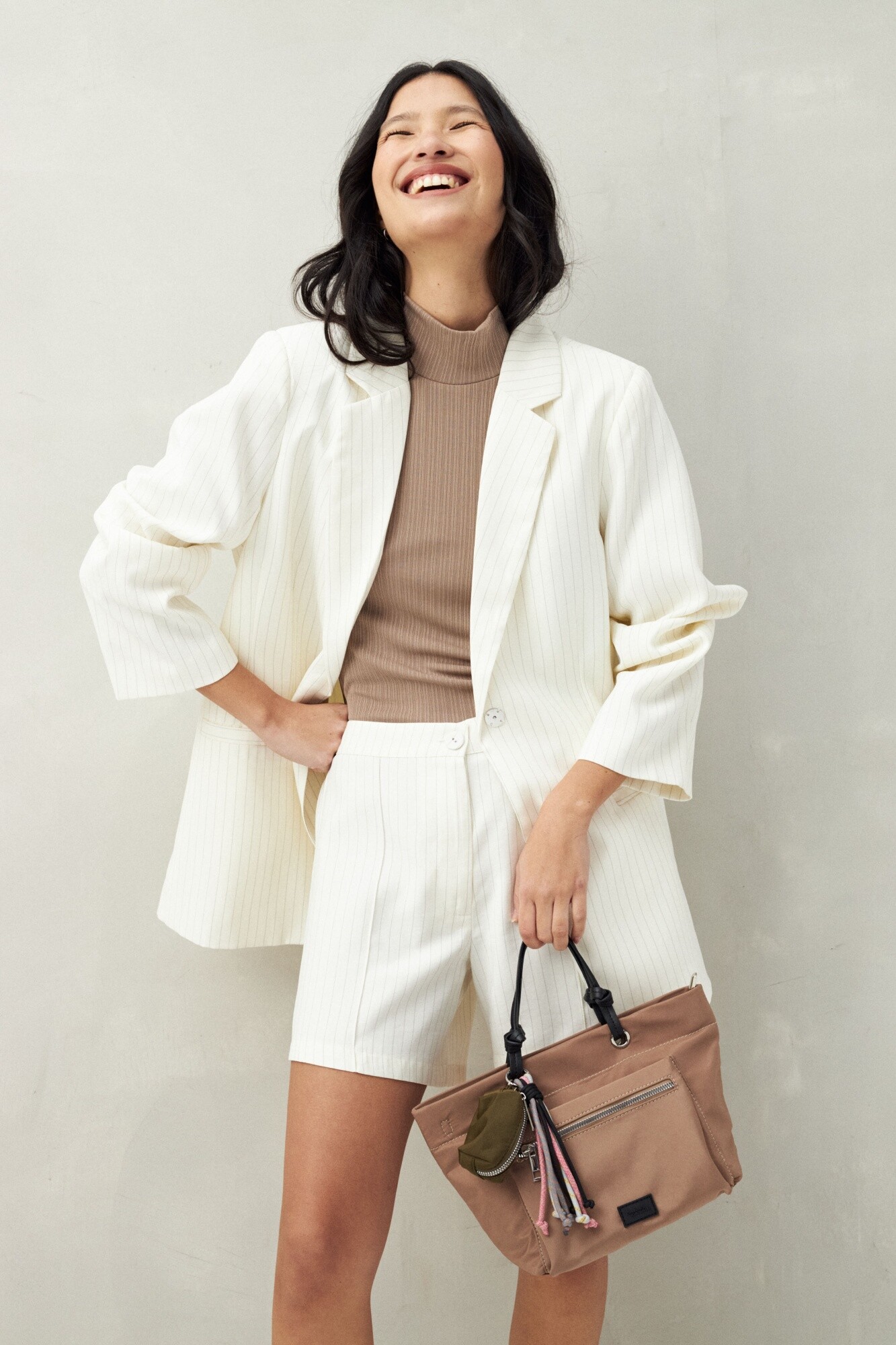 Cartera de nylon con un aire sporty y funcional, perfecta para el día a día. Incorpora un práctico bolsillo frontal con cierre, asas dobles y detalles de cordones multicolor que le suman un toque original y trendy. Además, incluye un pequeño pouch desmontable, ideal para organizar lo esencial.