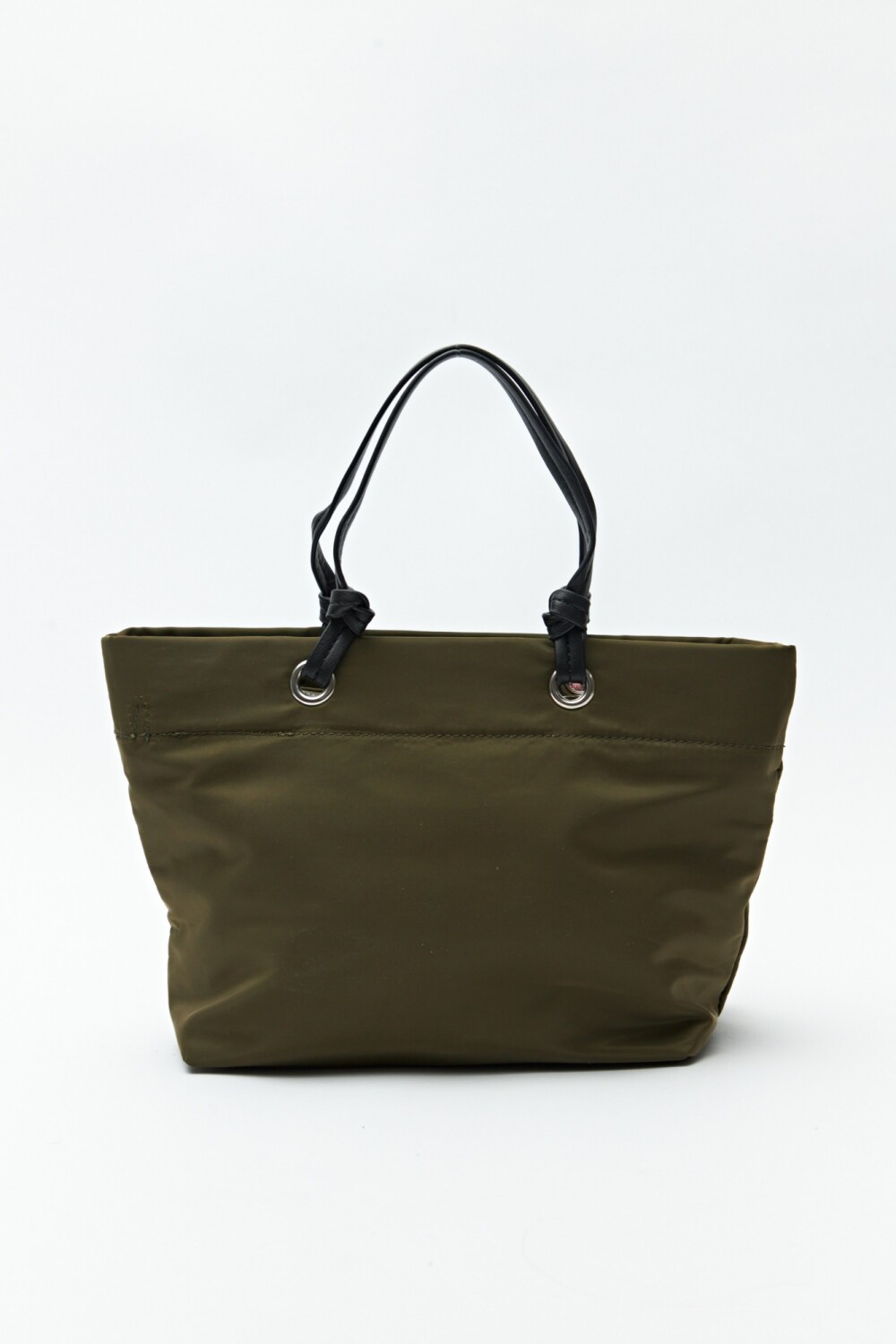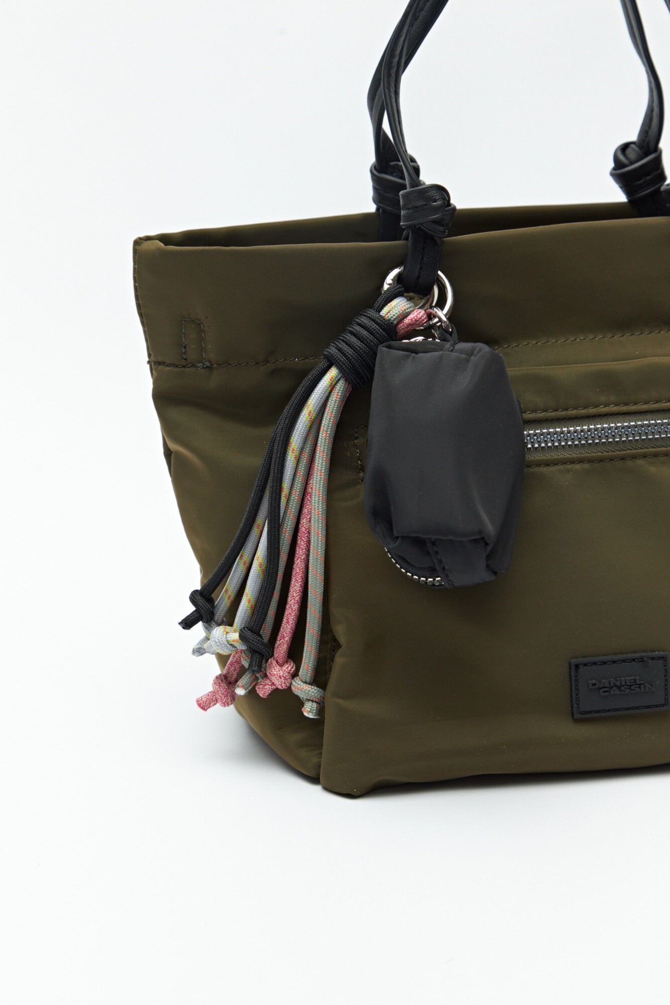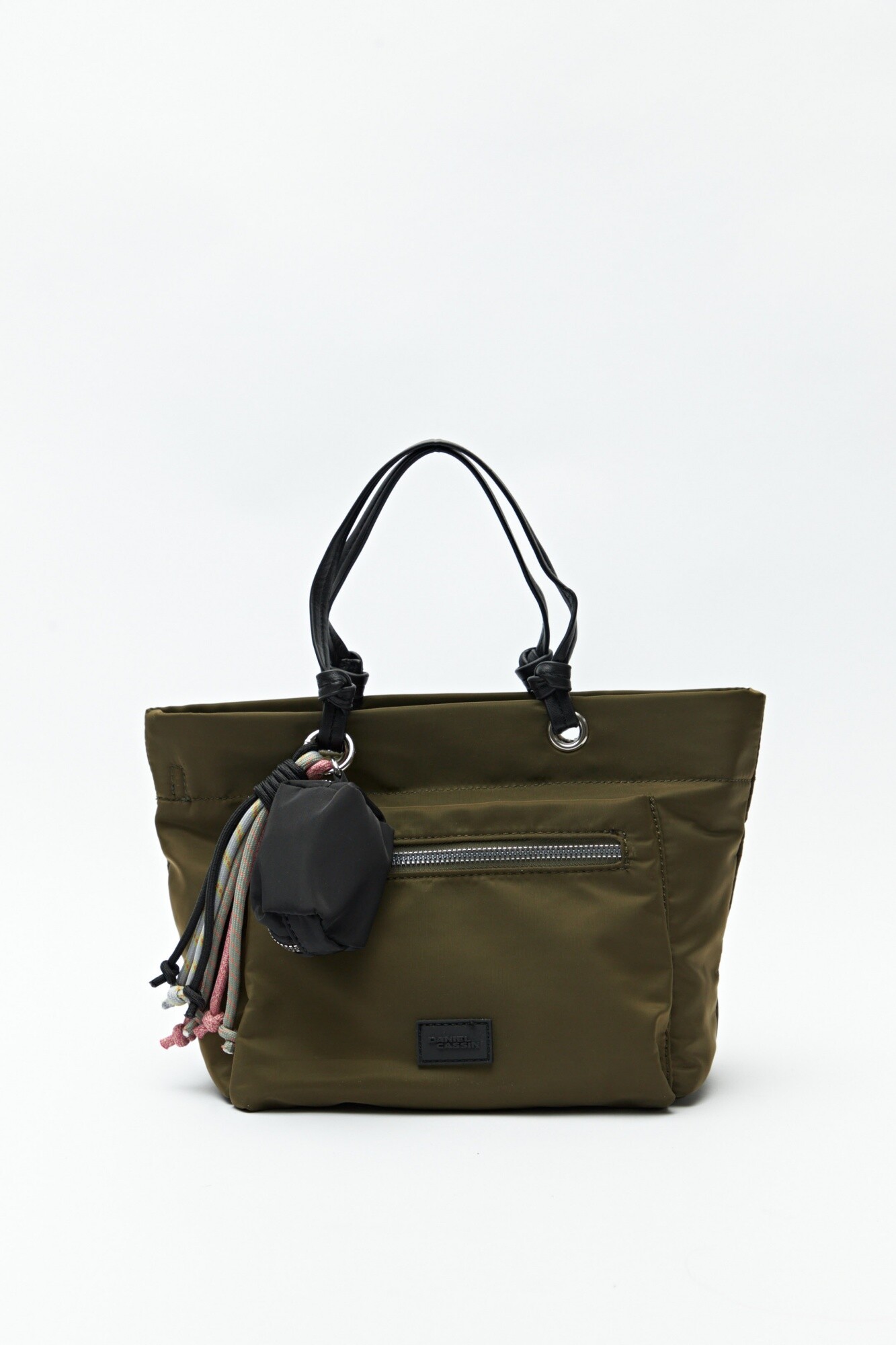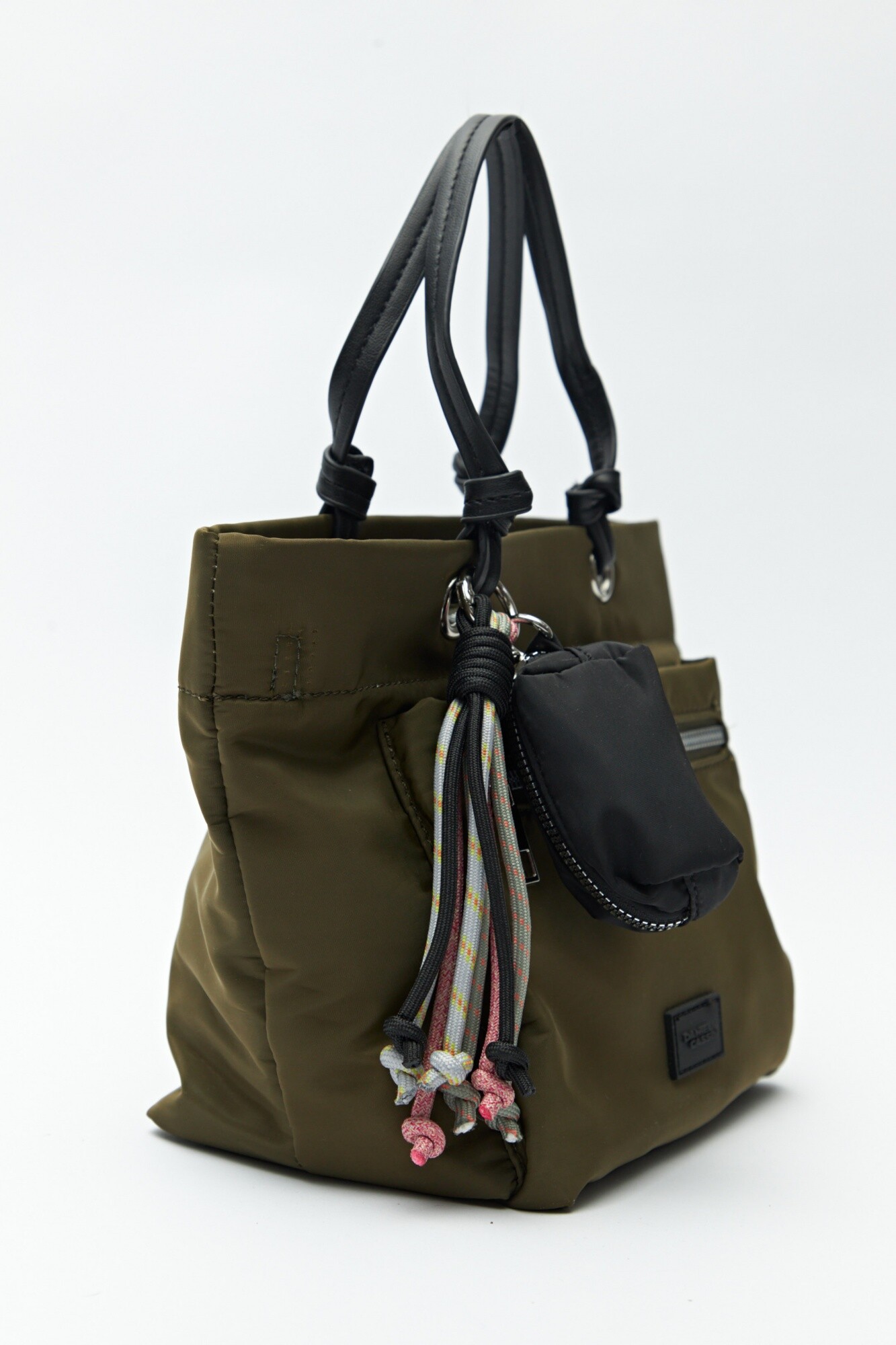 Cartera de nylon con un aire sporty y funcional, perfecta para el día a día. Incorpora un práctico bolsillo frontal con cierre, asas dobles y detalles de cordones multicolor que le suman un toque original y trendy. Además, incluye un pequeño pouch desmontable, ideal para organizar lo esencial.