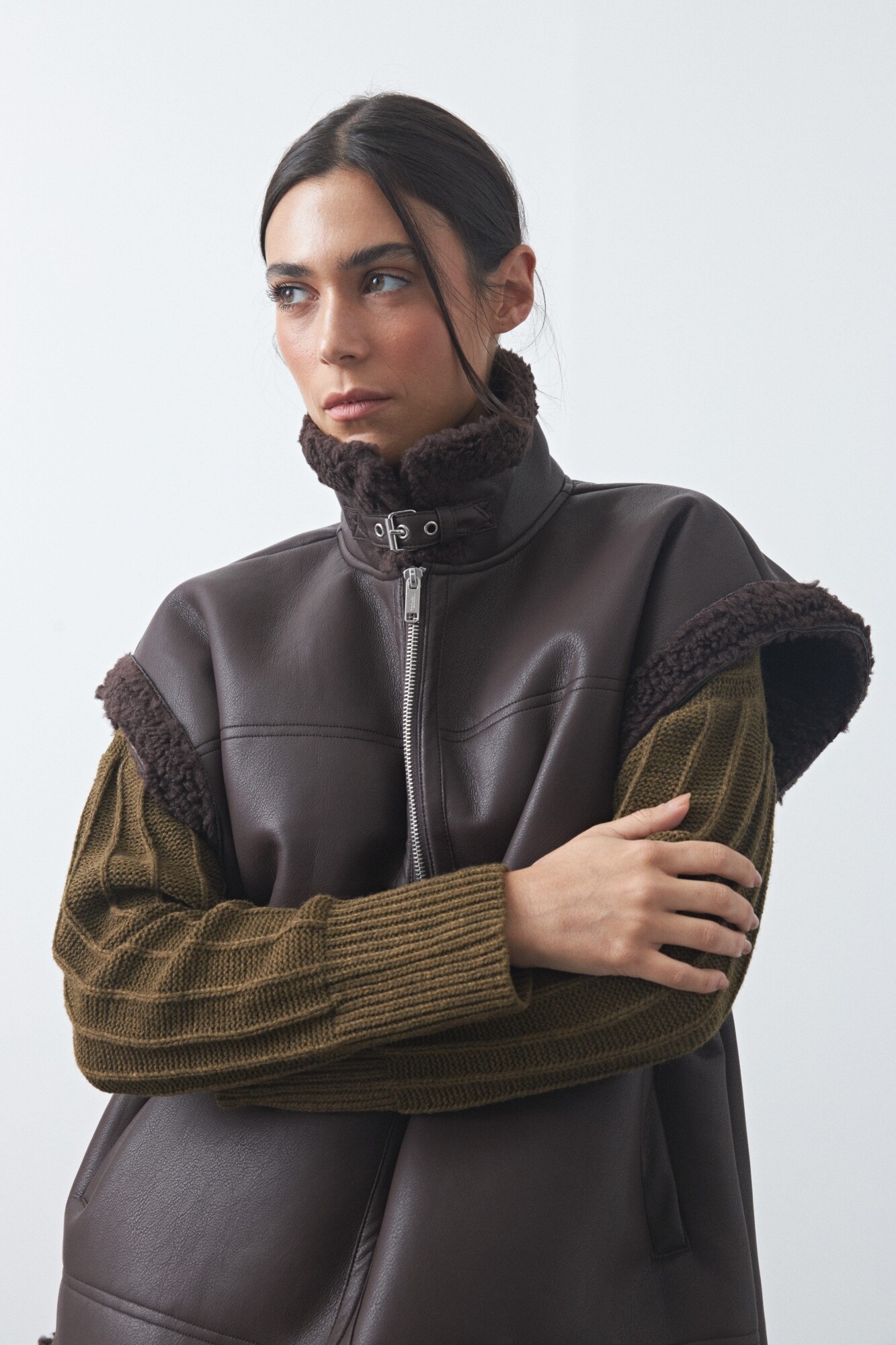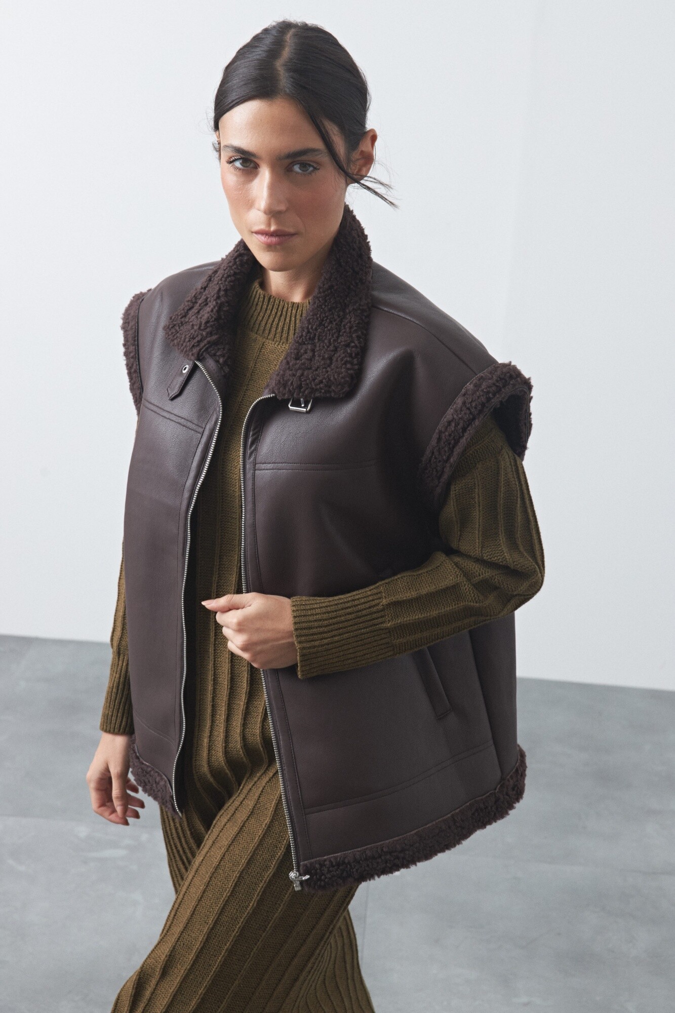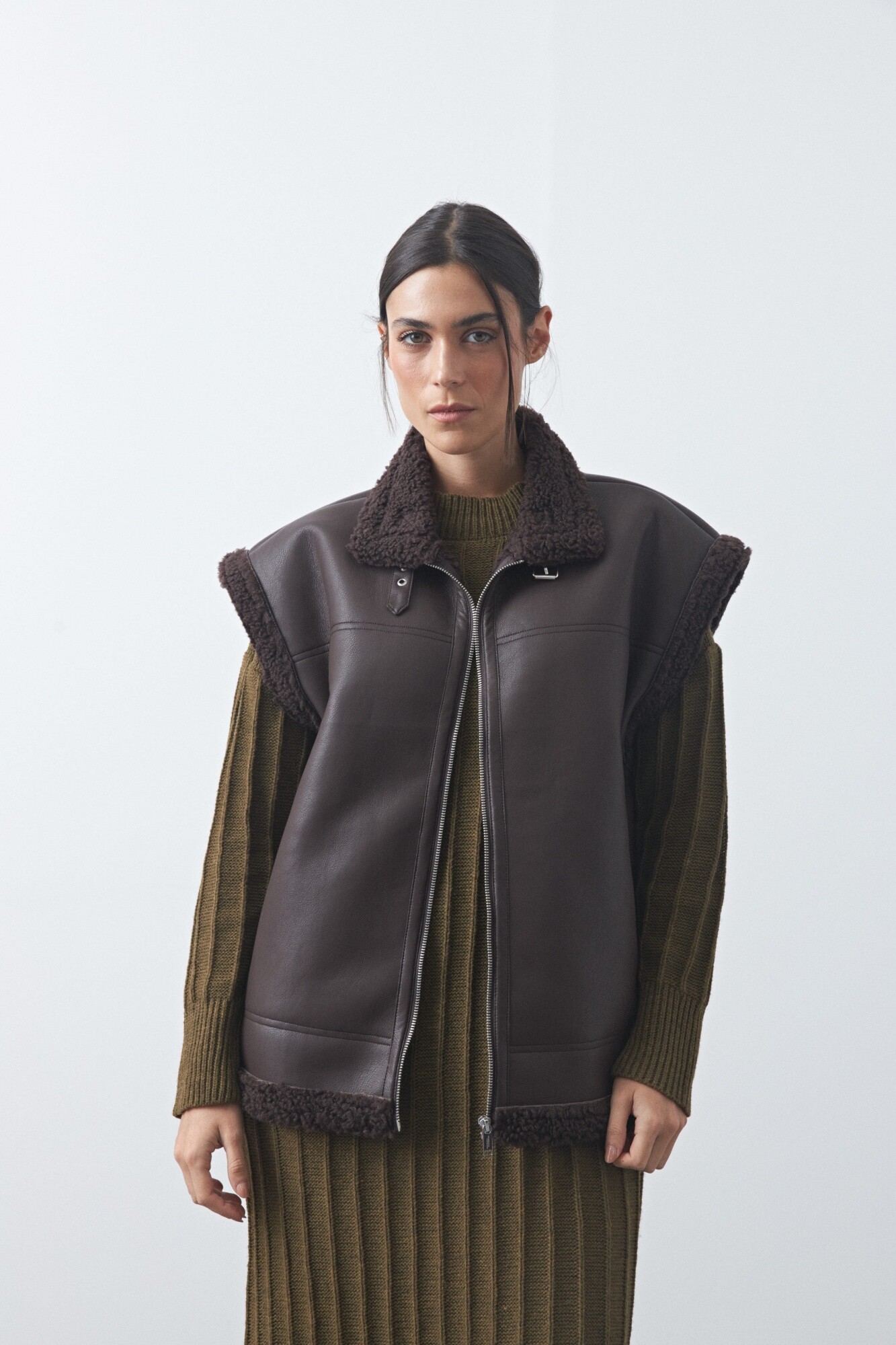 Marcá tendencia con el chaleco Amparo, consta de un cierre, corderito en las mangas, final de la cintura y cuello. Su versatilidad hace que vaya con todo!