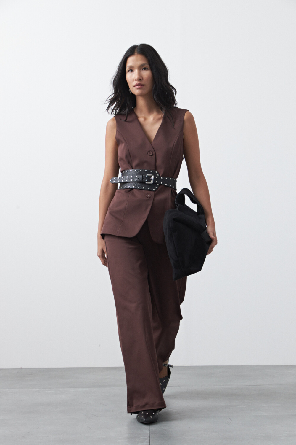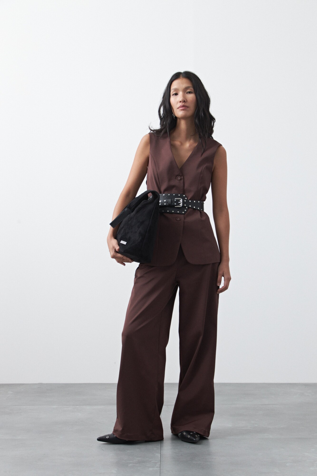 Chaleco sastrero de silueta recta y escote en V, una pieza que reinterpreta la sastrería clásica con una impronta actual y versátil. Su estructura limpia, con botones al frente y líneas definidas, estiliza la figura y permite llevarlo solo como top o superpuesto para un look en capas más elaborado.