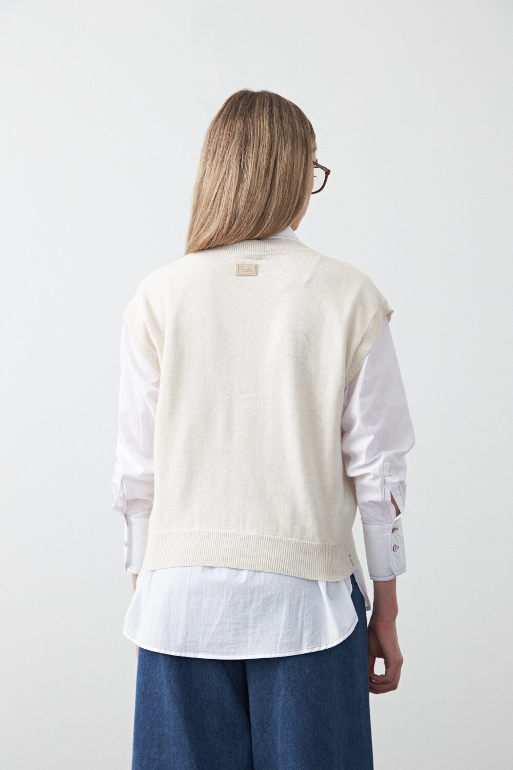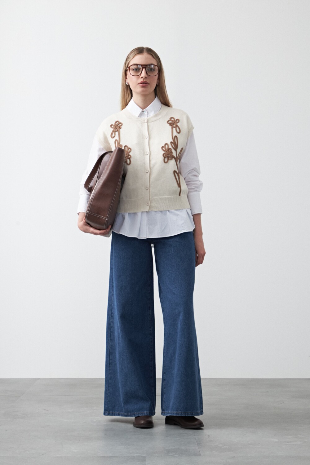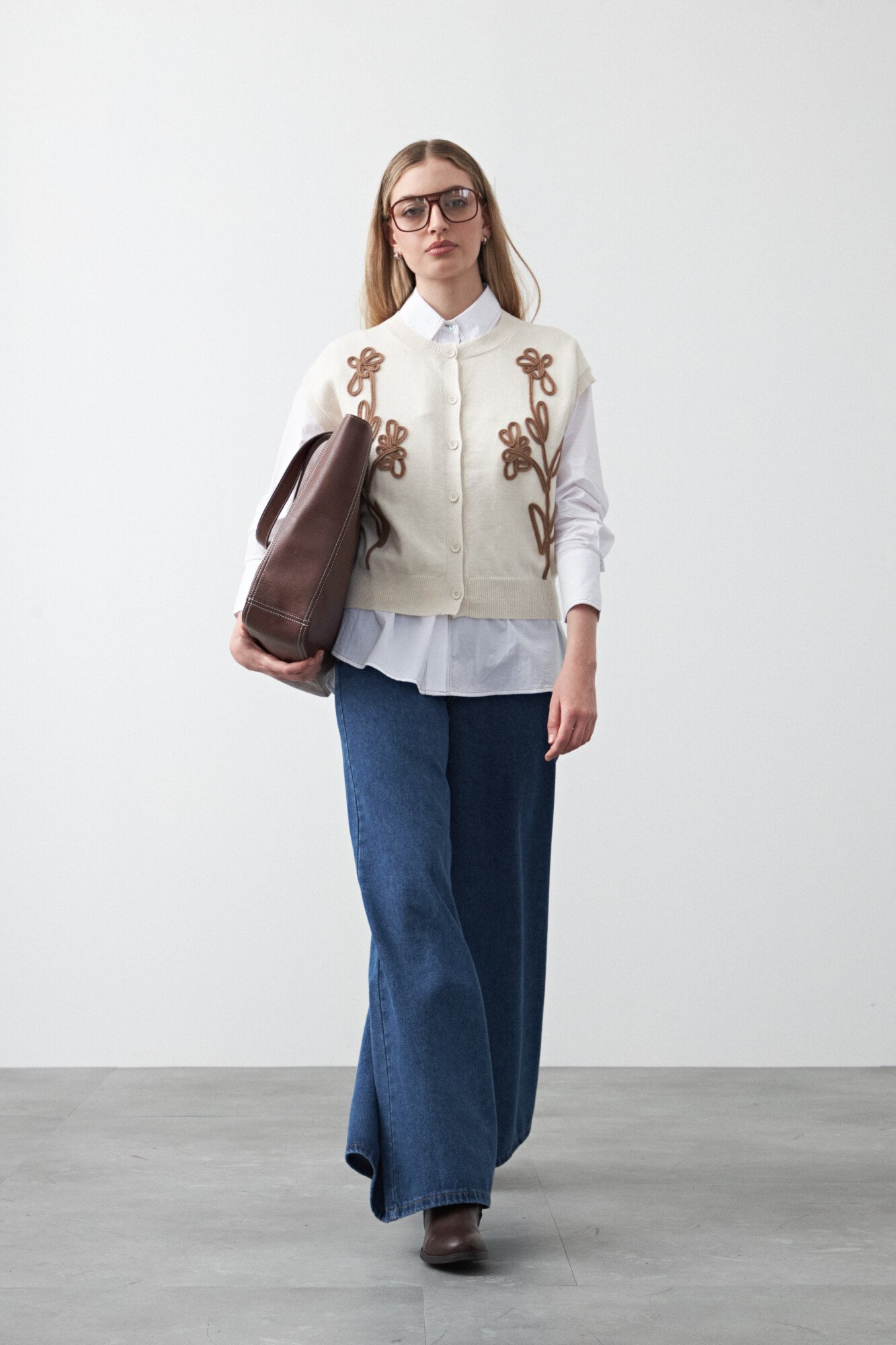 Chaleco tejido con bordado aplicado que suma textura y diseño a cualquier look. Su estructura liviana permite usarlo solo o en capas, aportando un detalle protagonista sin perder versatilidad. El bordado de inspiración orgánica realza la prenda y la convierte en una opción ideal para combinar con camisas, blusas o prendas básicas, logrando un estilismo cuidado y actual, clave para elevar cualquier look.