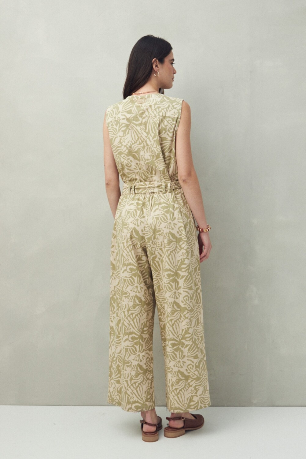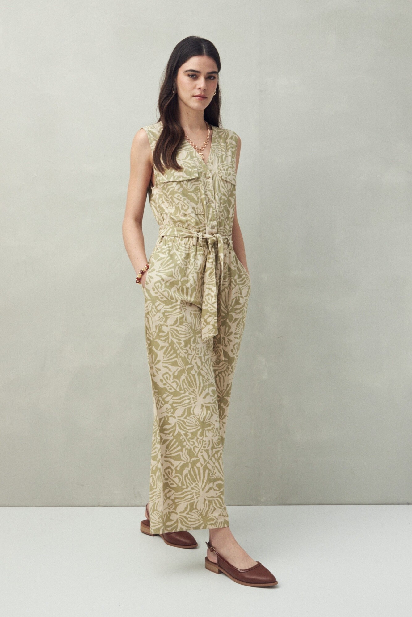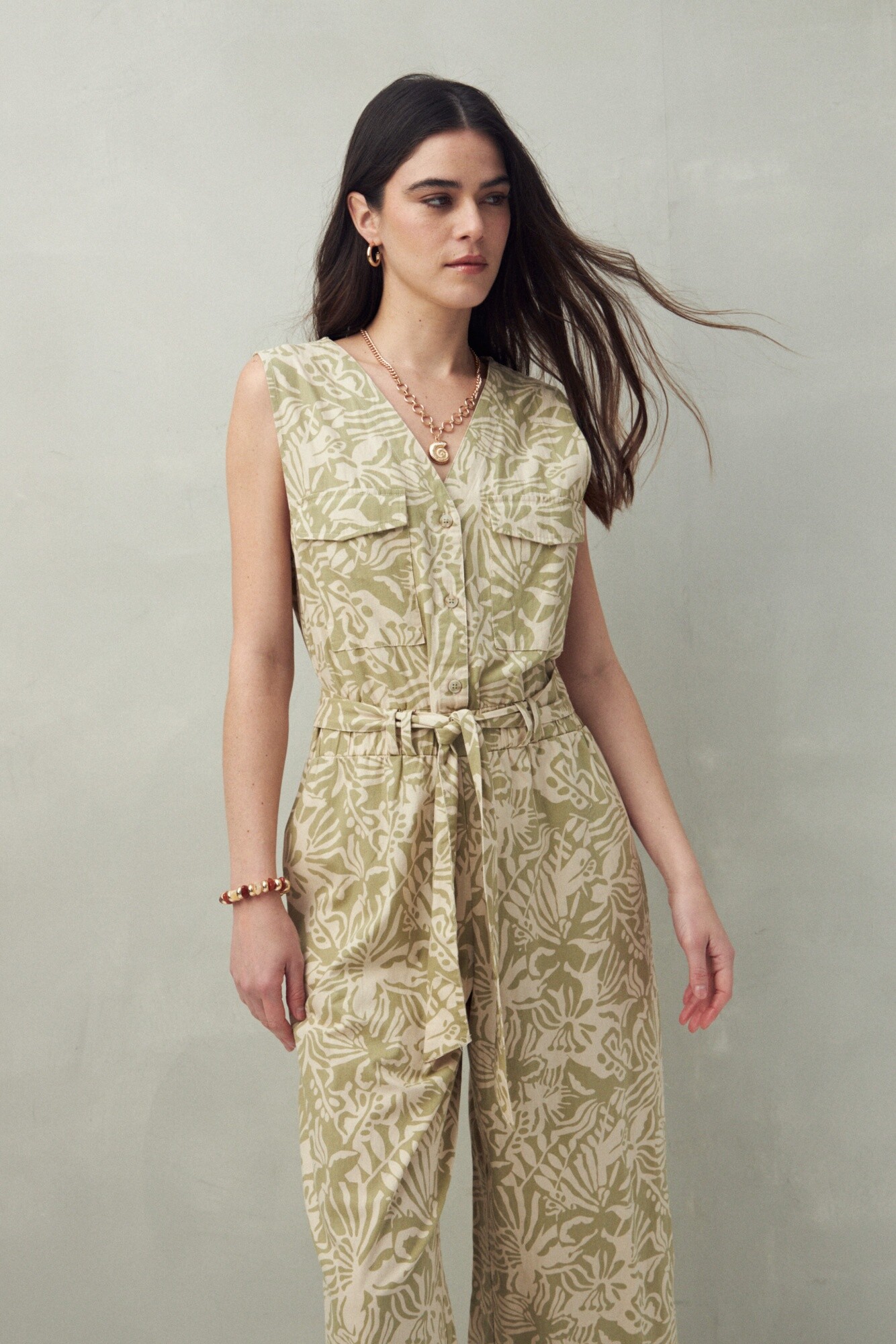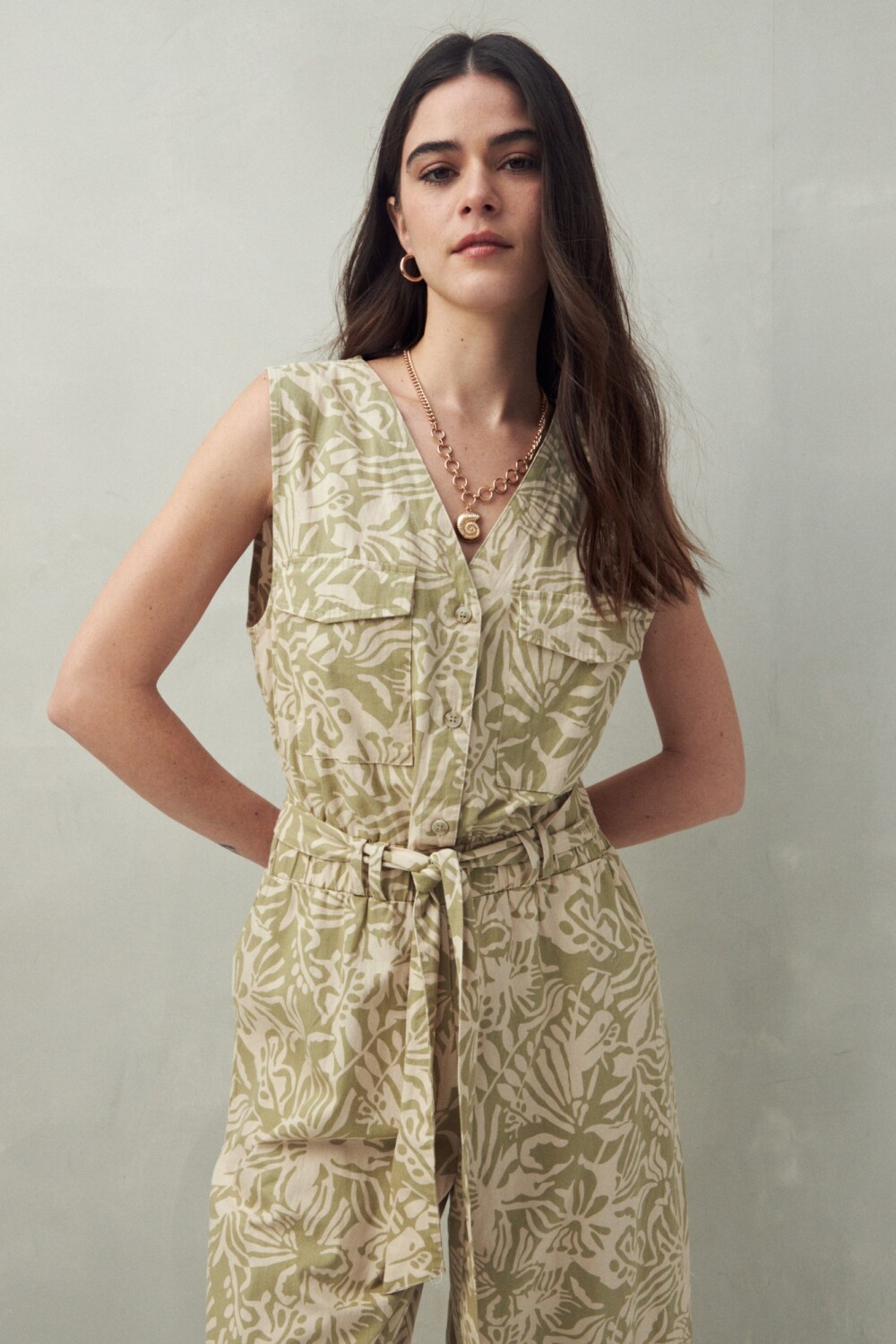 Mono sin mangas de algodón, con un diseño fresco y trendy. Su silueta amplia y fluida se ajusta en la cintura con lazo para realzar la figura sin resignar comodidad. Los bolsillos y la botonadura frontal lo hacen práctico y funcional, mientras que sus estampas —orgánica o rayada— le dan ese aire único que lo convierte en protagonista de la temporada.