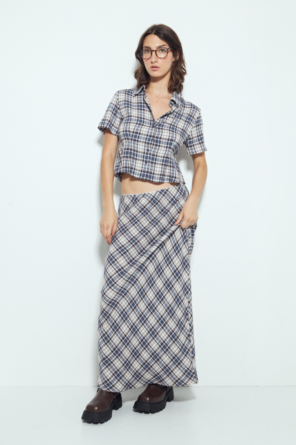 Falda larga a cuadros de silueta fluida y caída liviana, pensada para acompañar el movimiento con un calce cómodo y actual. Su diseño aporta un aire relajado pero pulido, ideal para armar conjuntos coordinados o combinar con básicos y lograr looks en tendencia. Una prenda versátil que se adapta al día a día y a propuestas más cancheras.