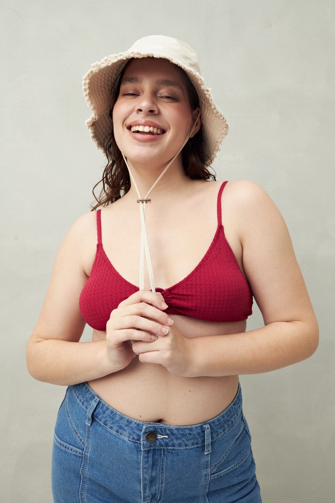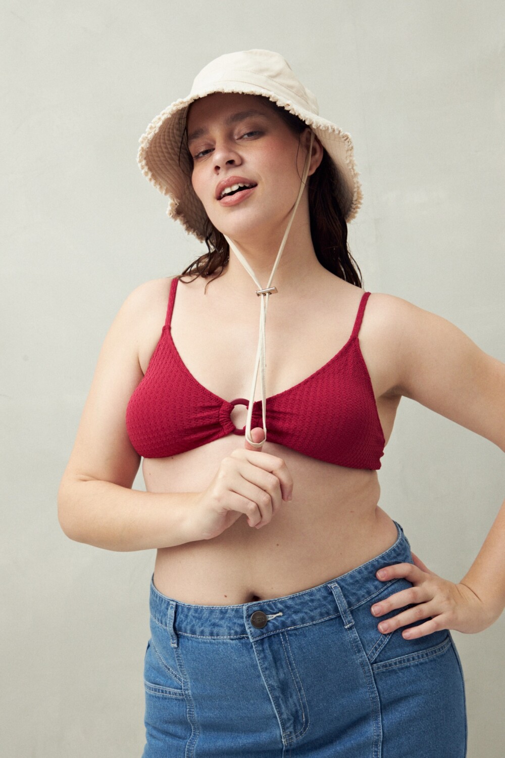 Gorro tipo bucket con borde desflecado y cordón ajustable, ideal para sumar un toque relajado y funcional a tus looks de verano. Su diseño liviano y versátil lo convierte en el aliado perfecto para protegerte del sol con estilo, tanto en la ciudad como en la playa.
