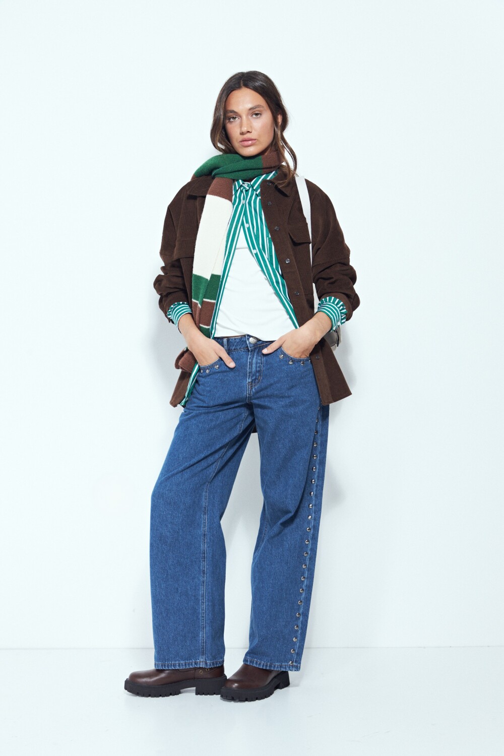 Jean de calce recto con detalles metálicos laterales que aportan un toque distintivo al diseño. La silueta relajada brinda comodidad para el uso diario, mientras que el denim estructurado mantiene la forma y eleva el look. Ideal para combinar con básicos o camisas y lograr un outfit canchero y actual.
