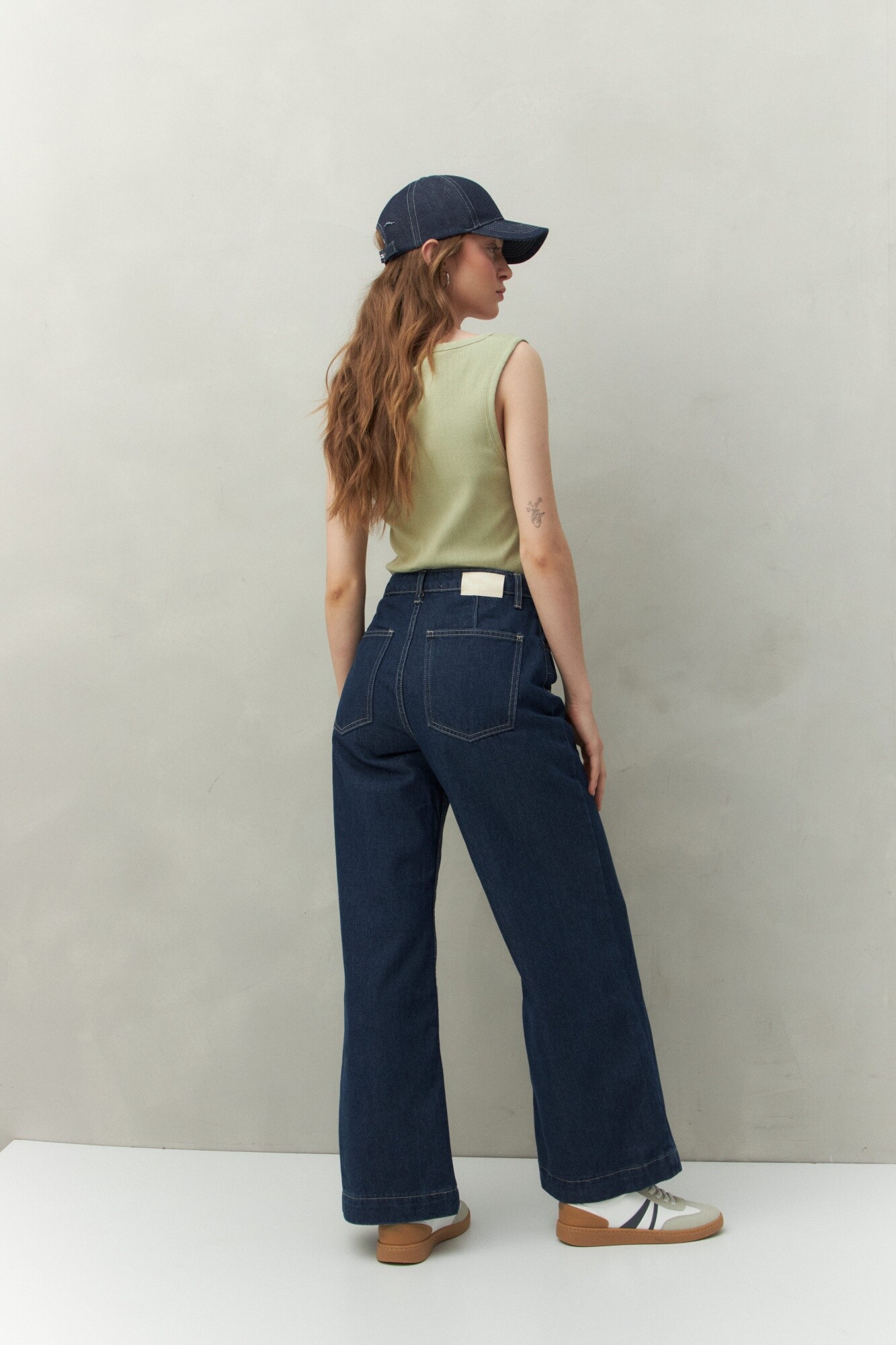 Este jean ancho es la definición de comodidad con estilo. De tiro alto y silueta fluida, su fit amplio aporta un aire relajado y trendy que realza cualquier look. El tejido combina resistencia y suavidad, logrando una caída natural que estiliza y suma movimiento. Perfecto para llevar con tops ajustados o camisas sueltas, es un comodín versátil para looks urbanos y modernos.