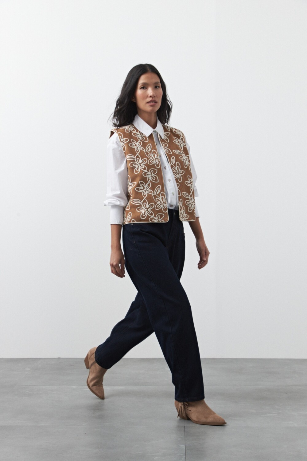 Jean fit barrel de silueta curva y volumen controlado, una de las formas más actuales dentro del denim. Su diseño se ensancha levemente en pierna y se ajusta en el bajo, creando una estructura moderna que aporta personalidad al look.