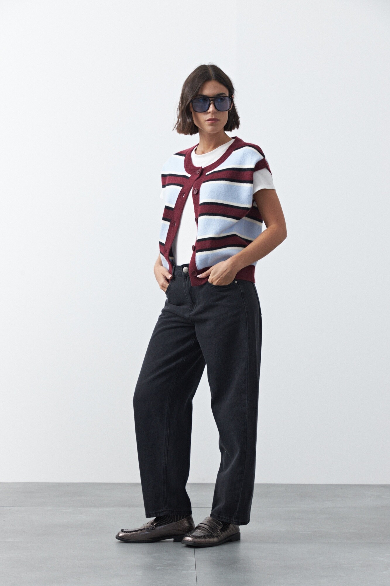 Jean fit barrel de silueta curva y volumen controlado, una de las formas más actuales dentro del denim. Su diseño se ensancha levemente en pierna y se ajusta en el bajo, creando una estructura moderna que aporta personalidad al look.