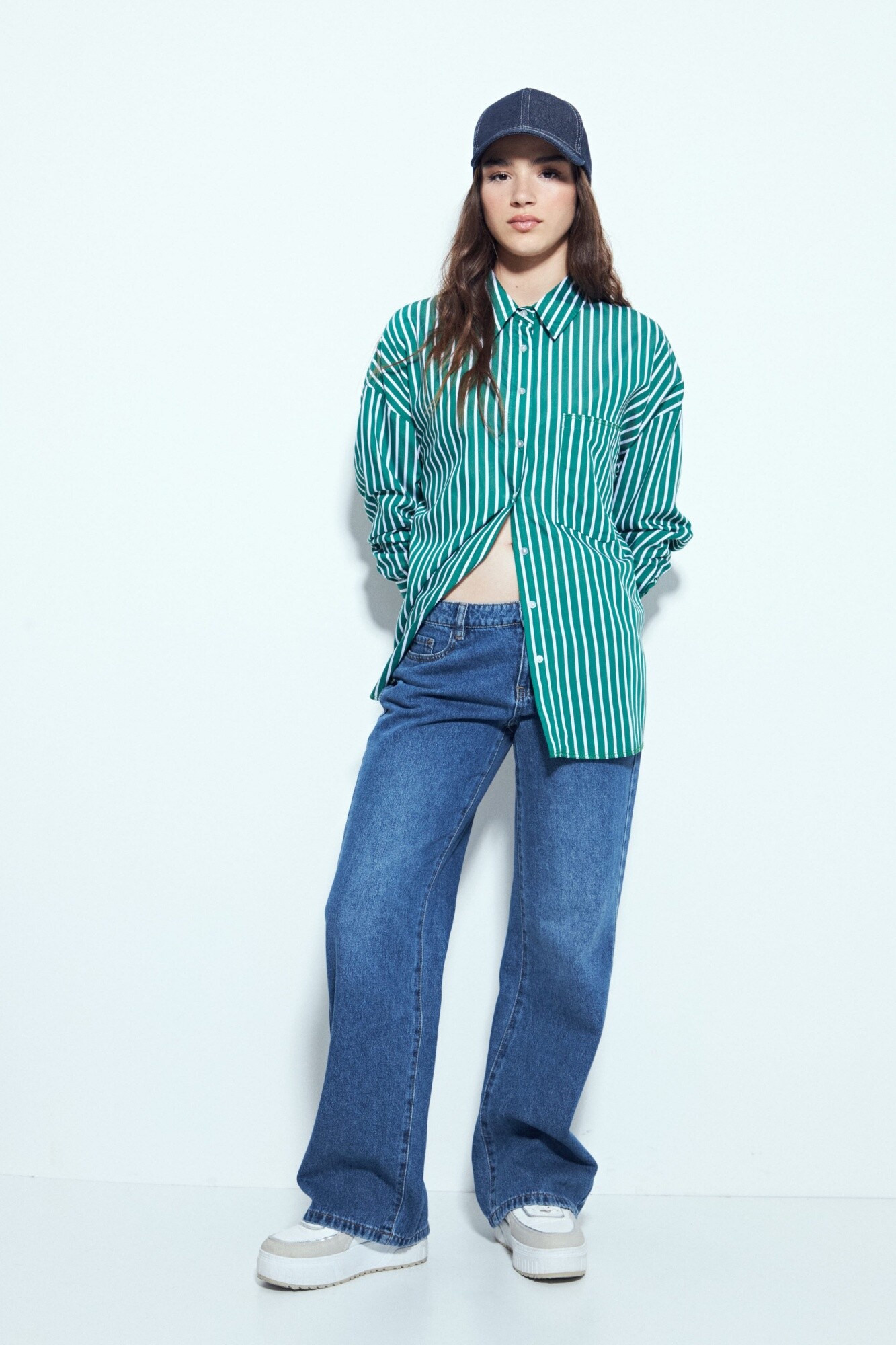 Jean de denim de tiro medio y calce recto, con silueta straight que mantiene el mismo ancho a lo largo de la pierna, logrando un look limpio y atemporal. Su estructura cómoda aporta una caída prolija y versátil, ideal para outfits urbanos de estética relajada. Un básico infalible, clave para elevar cualquier look con una impronta moderna.