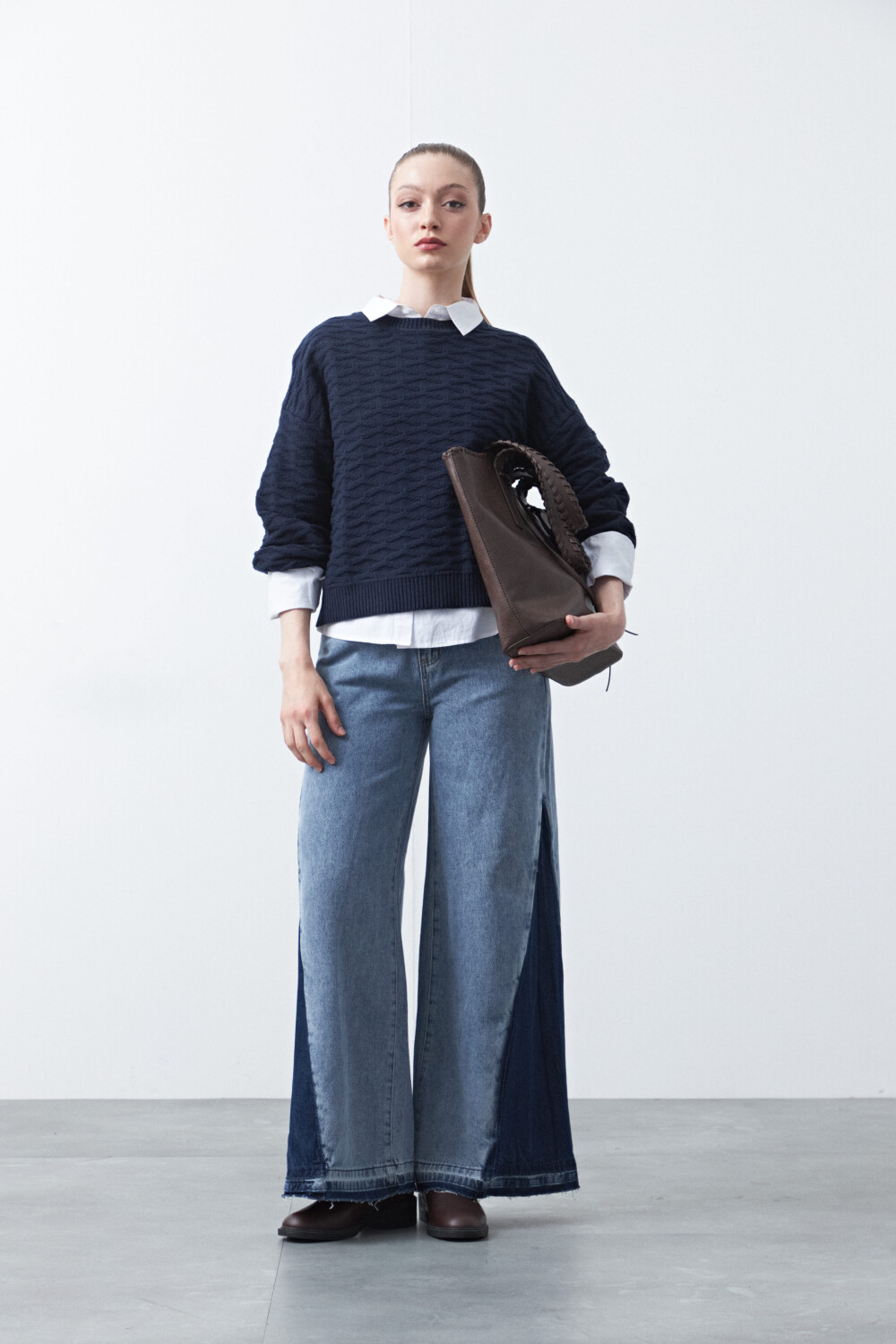 Jean de fit ultra wide confeccionado en denim de algodón, con una silueta bien amplia desde la cadera que aporta caída fluida y movimiento. El diseño destaca por su panel lateral en contraste, que estiliza visualmente la pierna y suma un guiño moderno al clásico jean. Una prenda de impronta relajada y actual, ideal para looks urbanos con personalidad.