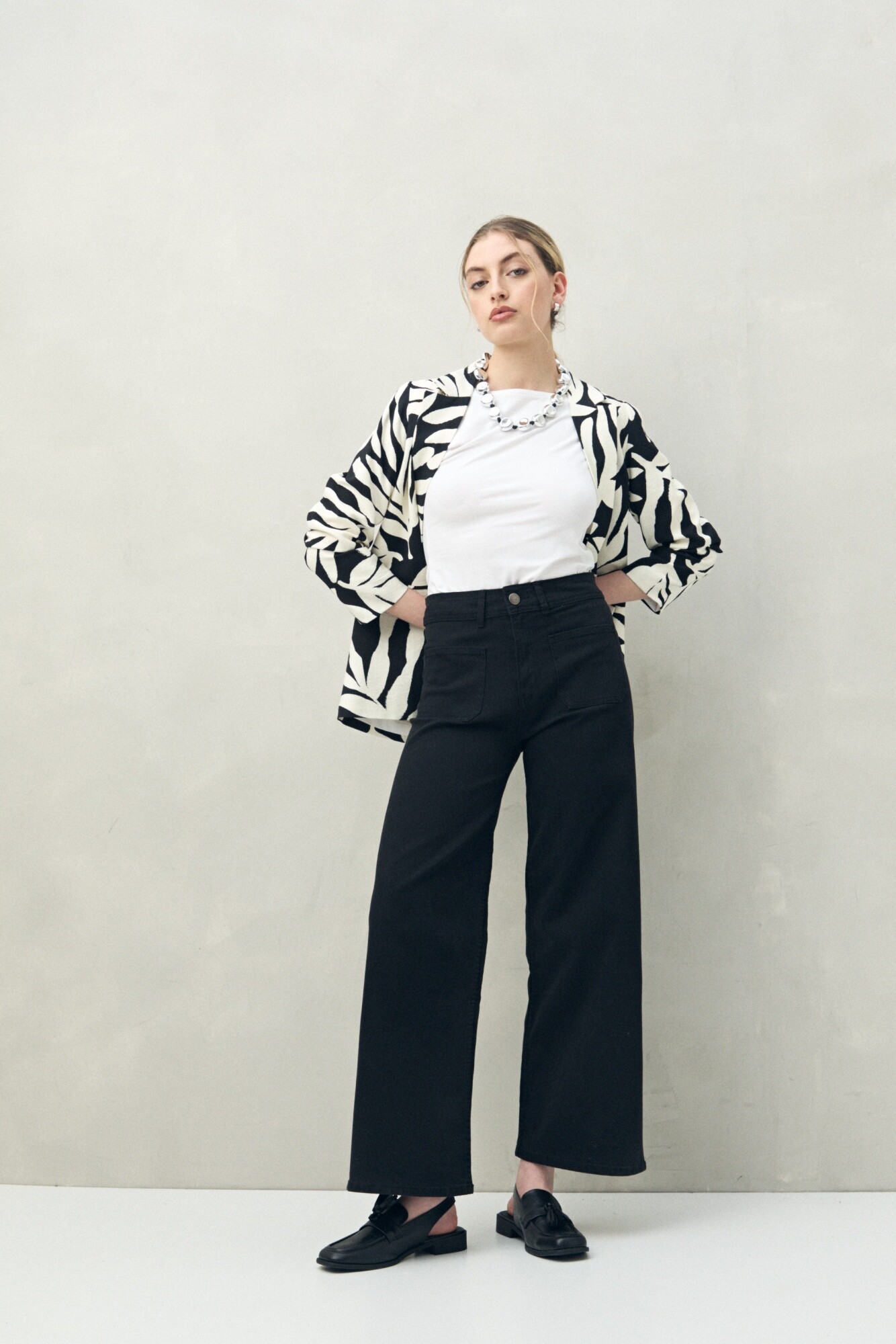 Jean ancho de tiro alto con bolsillos delanteros amplios que aportan un detalle moderno y funcional. Su fit estiliza y al mismo tiempo brinda comodidad, convirtiéndose en una prenda clave para looks urbanos y relajados. Perfecto para combinar con blusas, camisas o tops y elevar cualquier outfit de temporada.