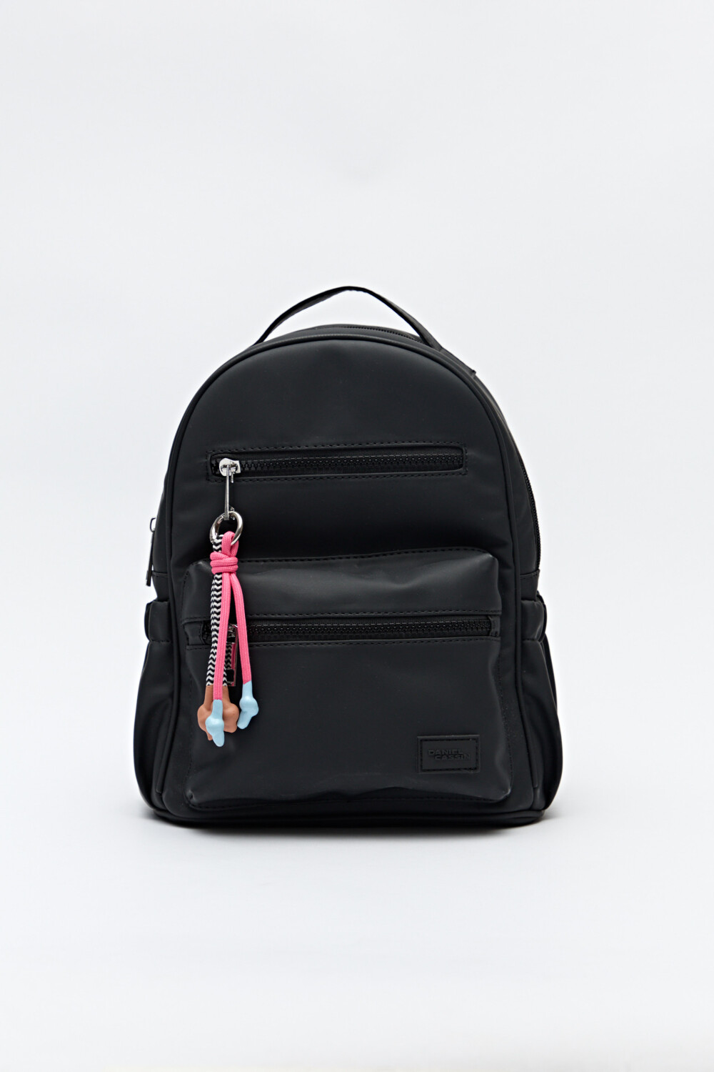 Mochila compacta en símil cuero, diseñada para acompañar tu día con estilo y practicidad. Su formato con múltiples bolsillos frontales y laterales permite organizar todo lo esencial, mientras que los tiradores con cordones de colores le dan un toque divertido y actual. Con correas regulables y un tamaño versátil, es el accesorio trendy que suma comodidad sin perder personalidad.