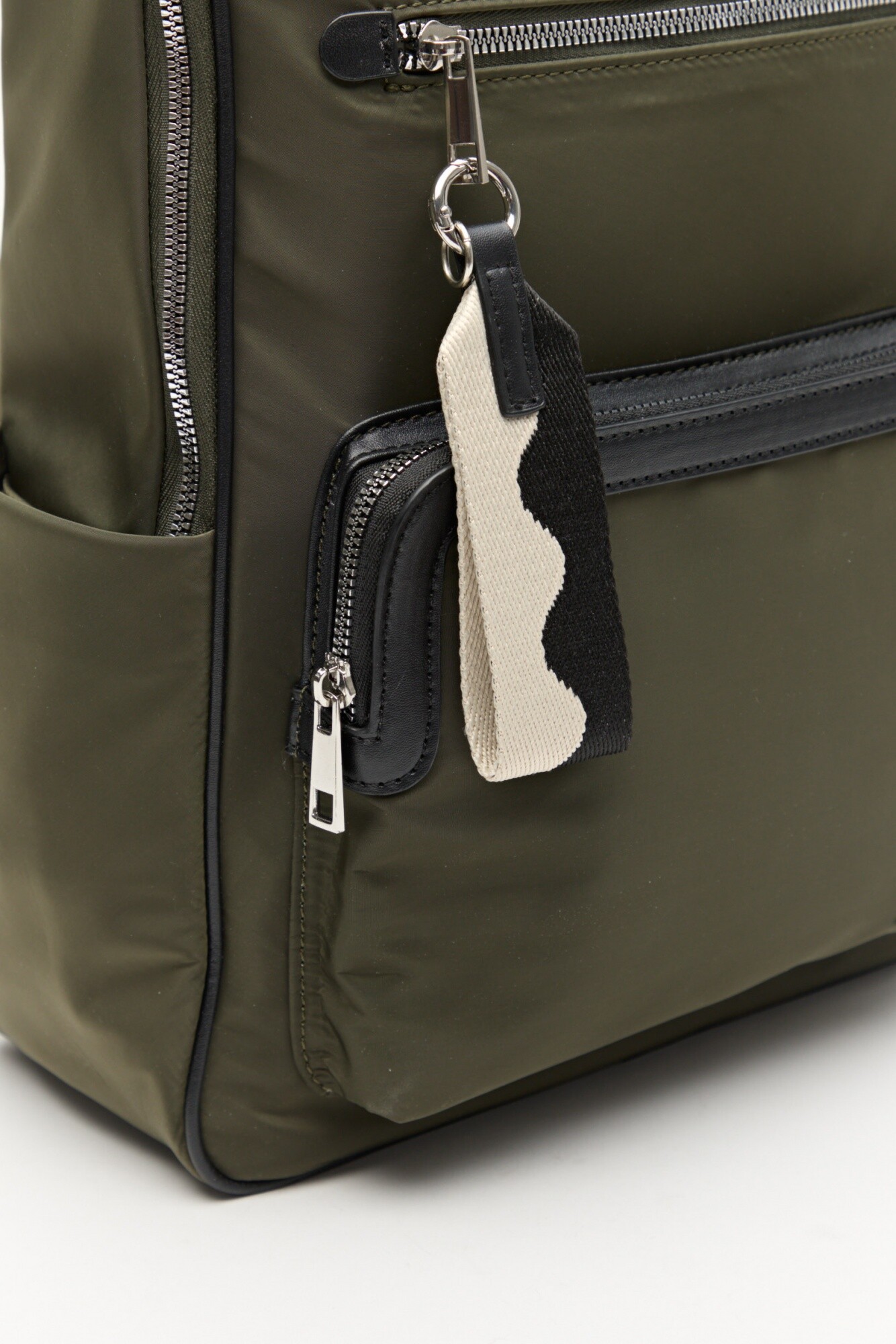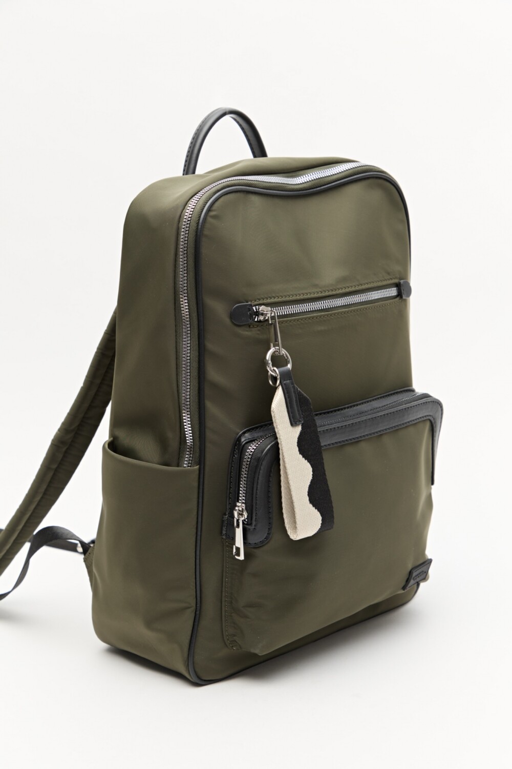 Mochila de nylon de diseño urbano y funcional, ideal para acompañar la rutina diaria con comodidad. Presenta asas acolchadas regulables, asa superior para llevar en mano y múltiples bolsillos exteriores con cierre que facilitan la organización. El detalle colgante aporta un toque distintivo y moderno, mientras que los compartimentos laterales suman practicidad para objetos de acceso rápido.