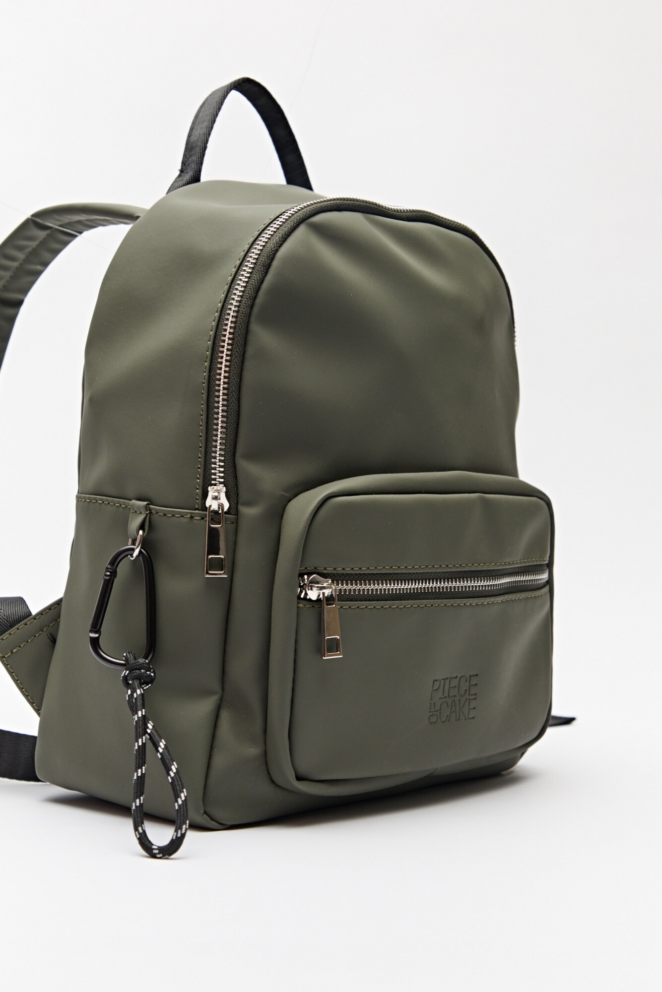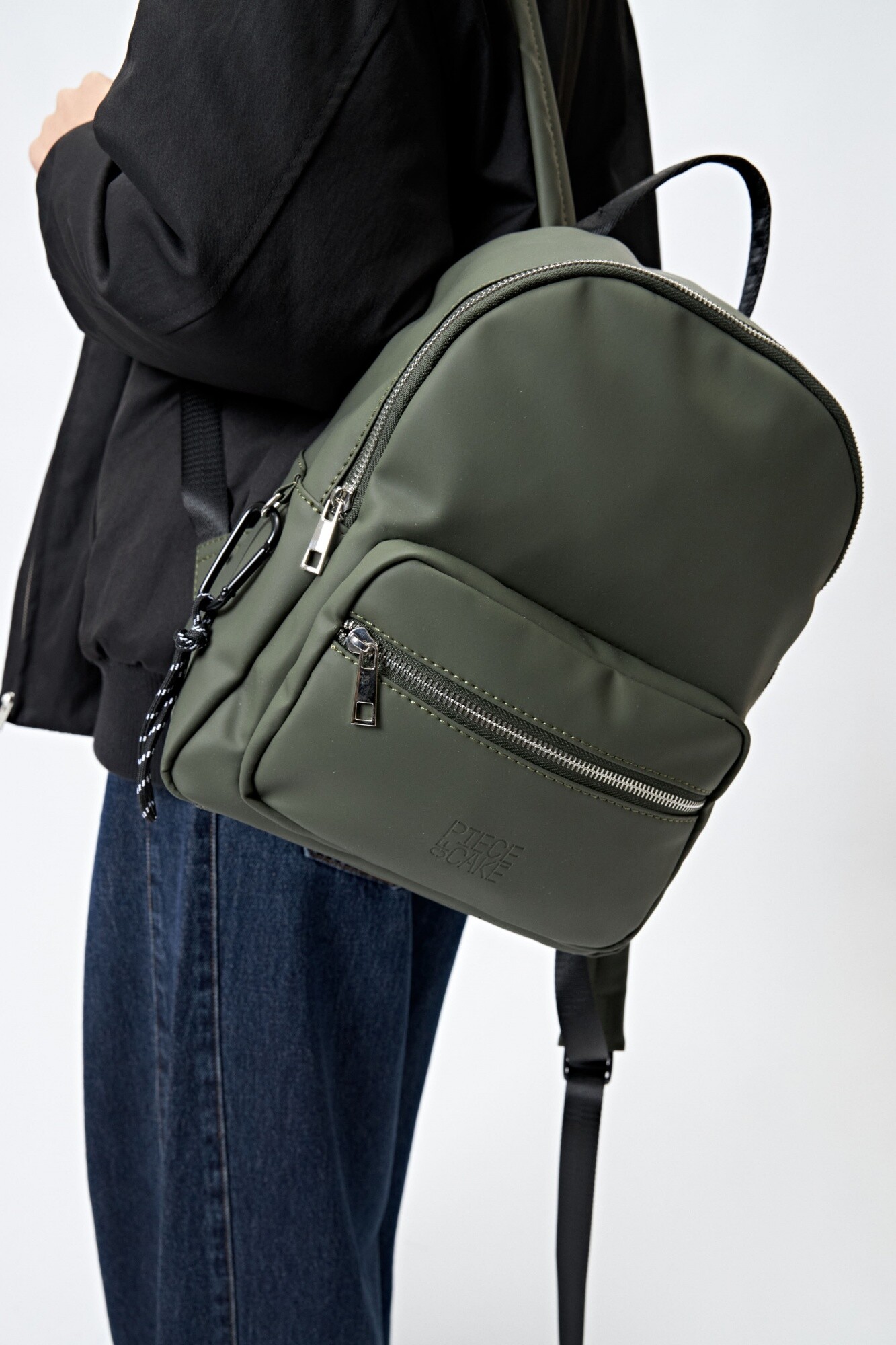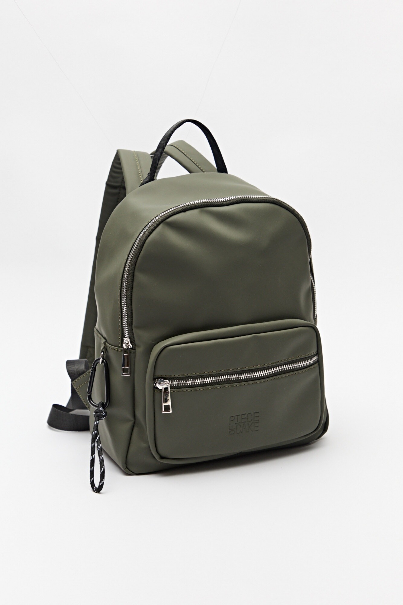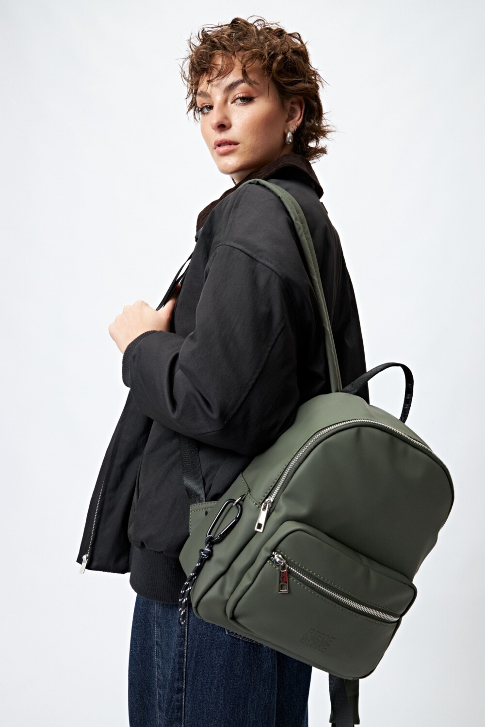Mochila en símil cuero de acabado mate, con diseño minimalista y práctico. Incorpora bolsillo frontal con cierre metálico y asa superior para llevar también en la mano. Un accesorio versátil y canchero, ideal para completar looks urbanos con un toque moderno.