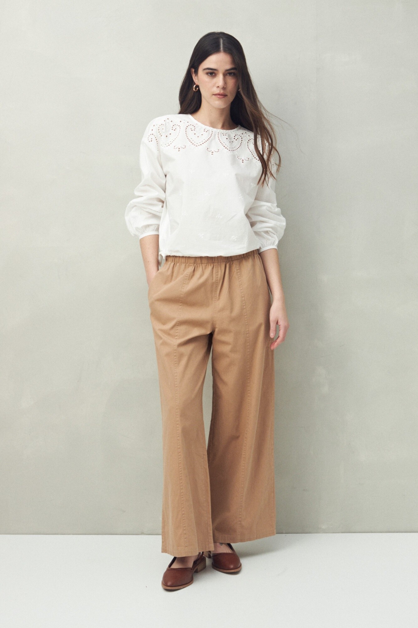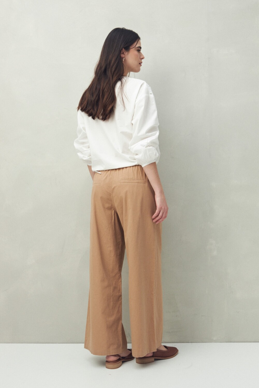 Pantalón baggy de algodón con cintura elastizada, pensado para combinar confort y estilo en una sola prenda. Su calce amplio aporta movimiento y frescura, mientras que la cintura elástica garantiza practicidad y versatilidad en el uso. Perfecto para looks relajados de día o para elevar un outfit urbano con un toque trendy y canchero.