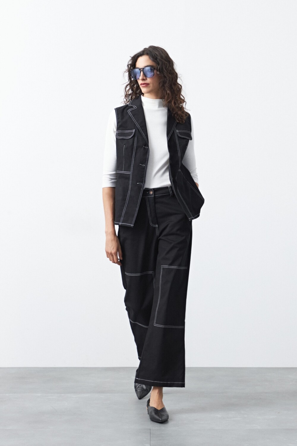 Pantalón de fit recto con pespuntes a contratono, una silueta atemporal que combina estructura y comodidad en partes iguales. Su diseño de tiro medio y pierna recta estiliza sin ajustar, logrando un calce equilibrado y versátil.