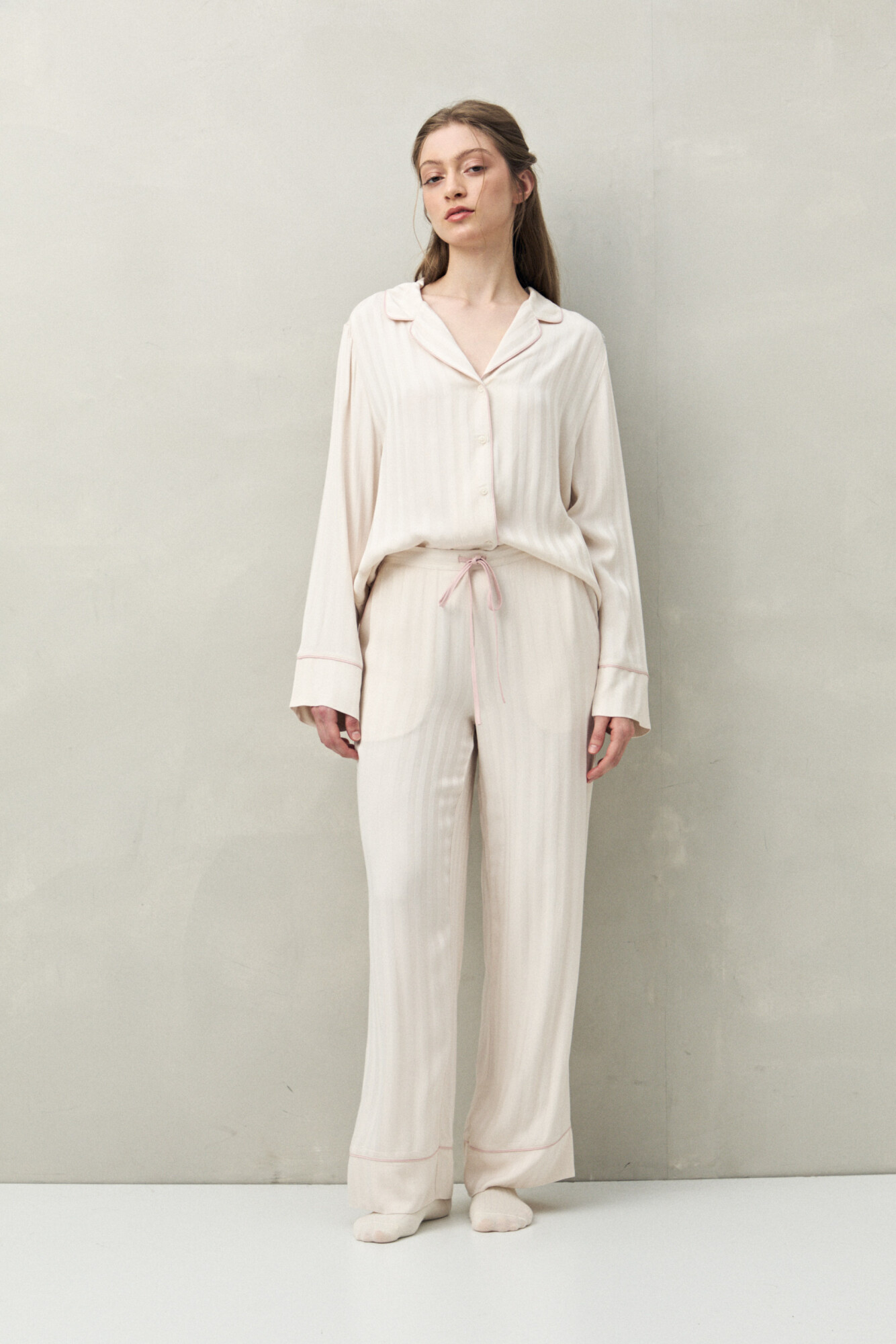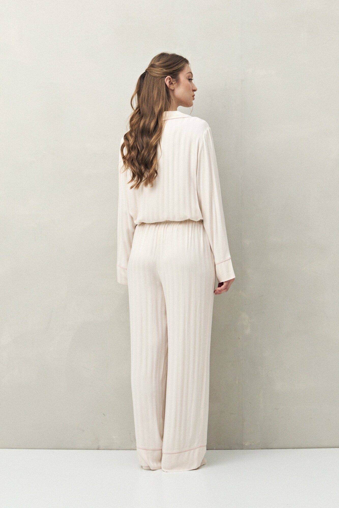 Confeccionado en viscosa liviana, ofrece una sensación suave y fresca ideal para el descanso. Presenta cintura con lazo regulable que aporta comodidad y ajuste personalizado, mientras que el diseño de pierna recta acompaña el movimiento sin ajustar. Un básico cómodo y elegante, pensado para sumar bienestar y estilo a los momentos de relax.