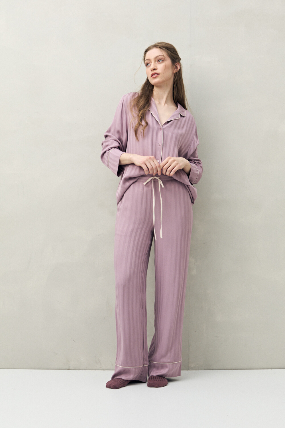 Confeccionado en viscosa liviana, ofrece una sensación suave y fresca ideal para el descanso. Presenta cintura con lazo regulable que aporta comodidad y ajuste personalizado, mientras que el diseño de pierna recta acompaña el movimiento sin ajustar. Un básico cómodo y elegante, pensado para sumar bienestar y estilo a los momentos de relax.