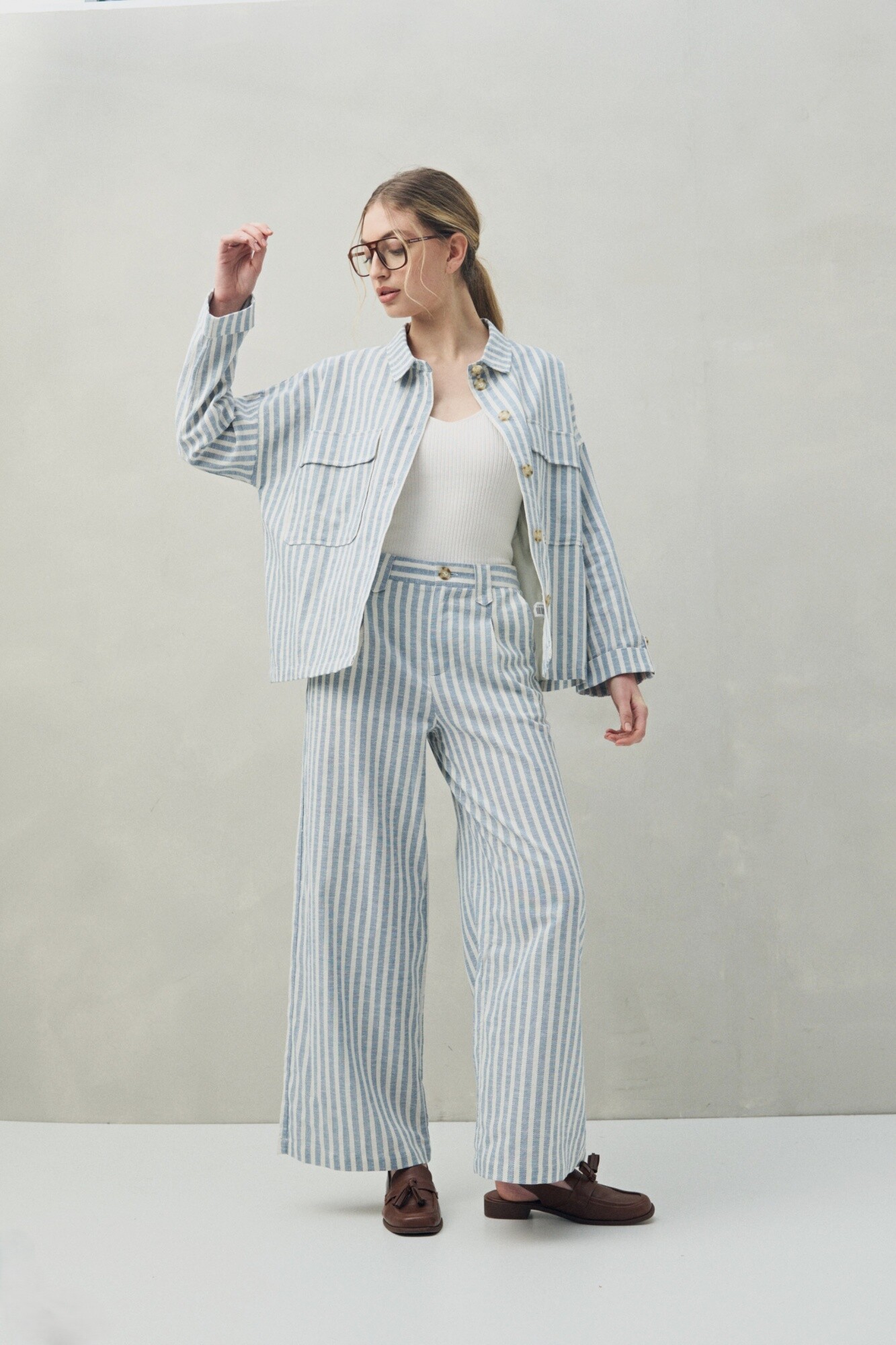 Con un calce amplio y relajado, este pantalón flare combina comodidad y estilo en una versión ideal para el día a día. Su textura natural aporta frescura y movimiento, mientras que las rayas verticales estilizan la figura y suman un aire casual chic. Perfecto para combinar con camisas livianas o tops básicos y crear un look urbano con un toque effortless.