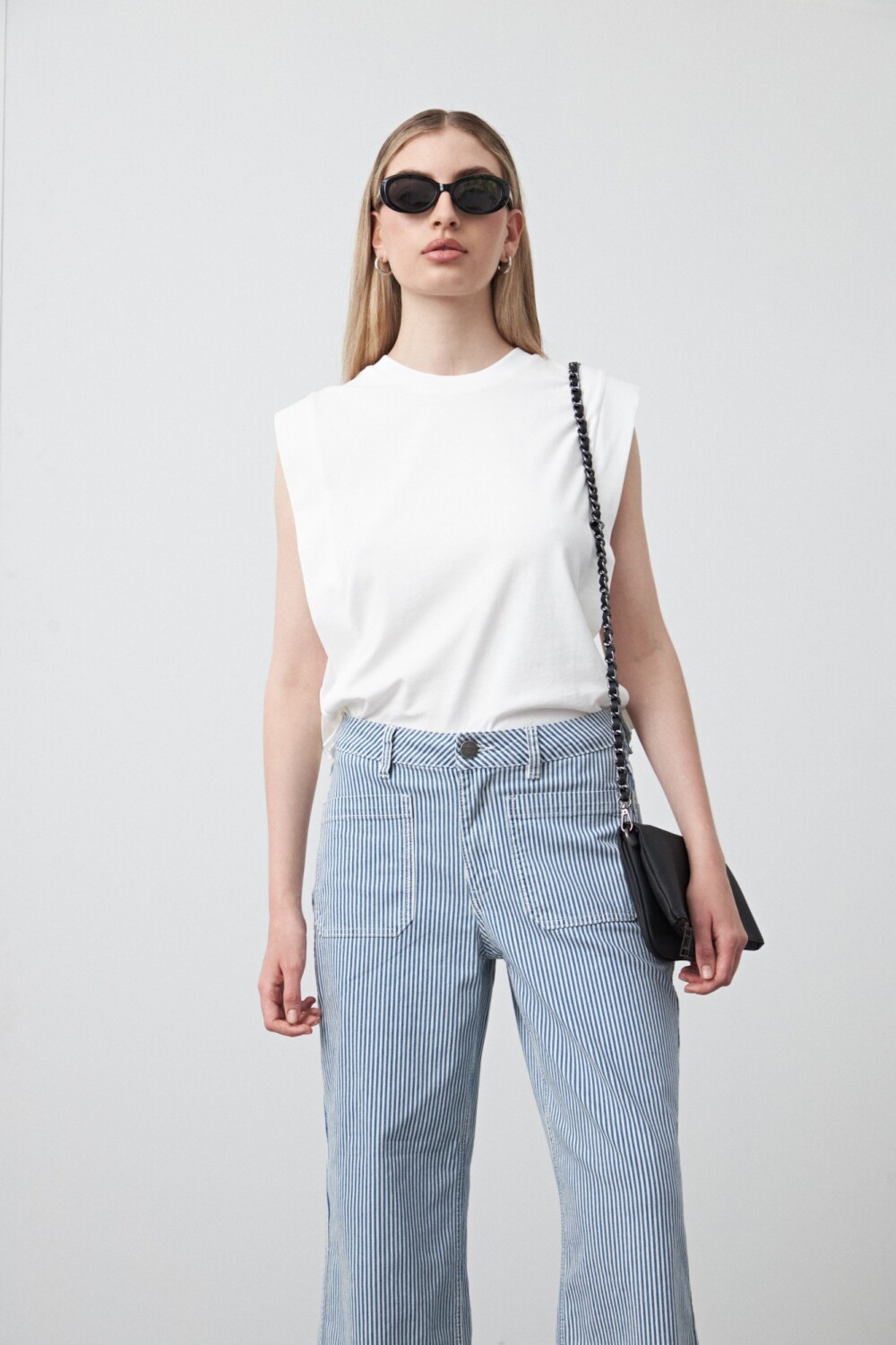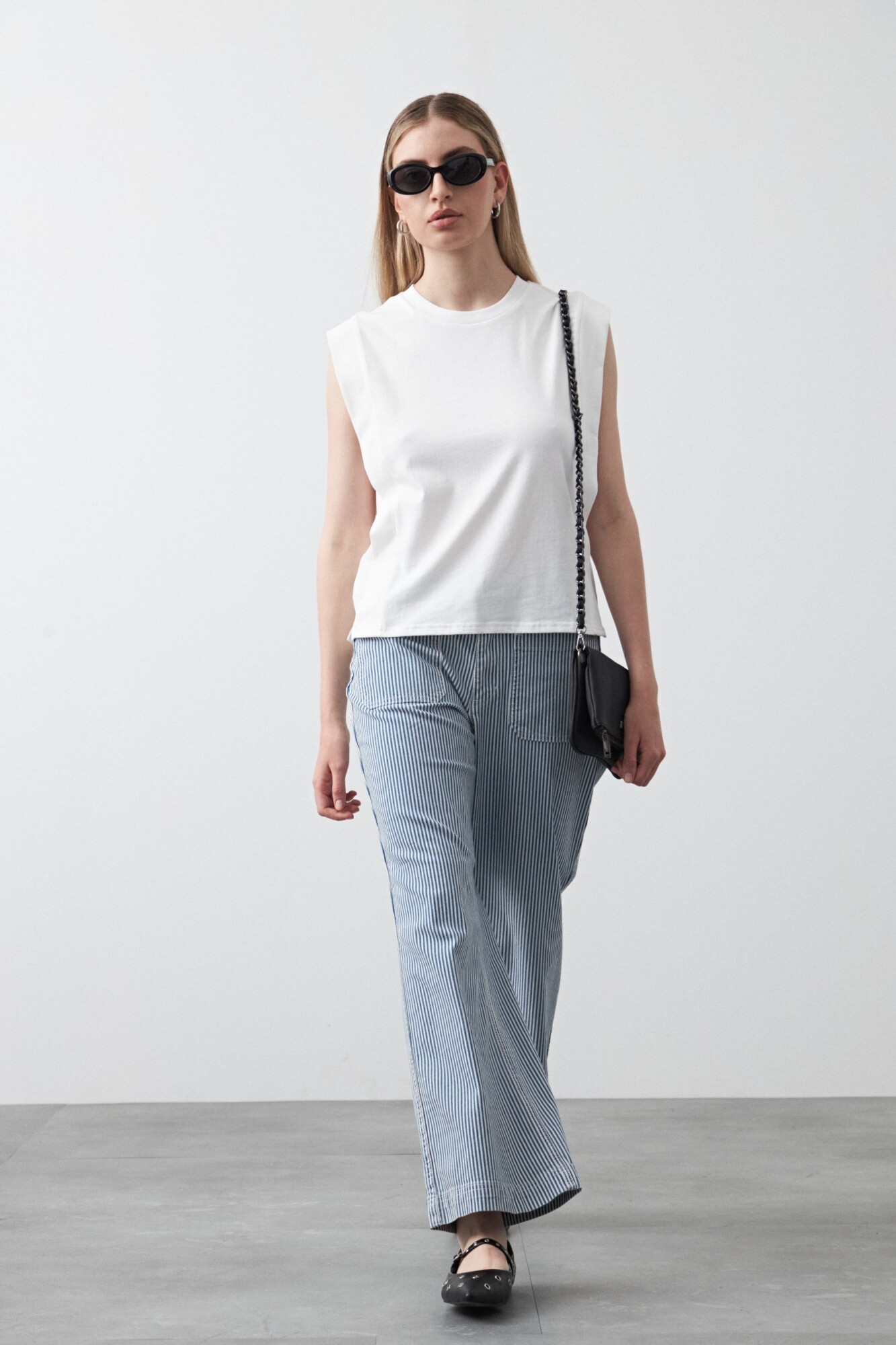 Pantalón de silueta recta con pierna amplia que aporta un calce cómodo y actual. El diseño presenta cintura media con presillas y cierre frontal, mientras que los bolsillos utilitarios suman un detalle funcional y urbano. El tejido con leve elasticidad acompaña el movimiento y asegura confort durante todo el día, convirtiéndolo en una opción versátil para looks relajados o más elevados según cómo se combine.