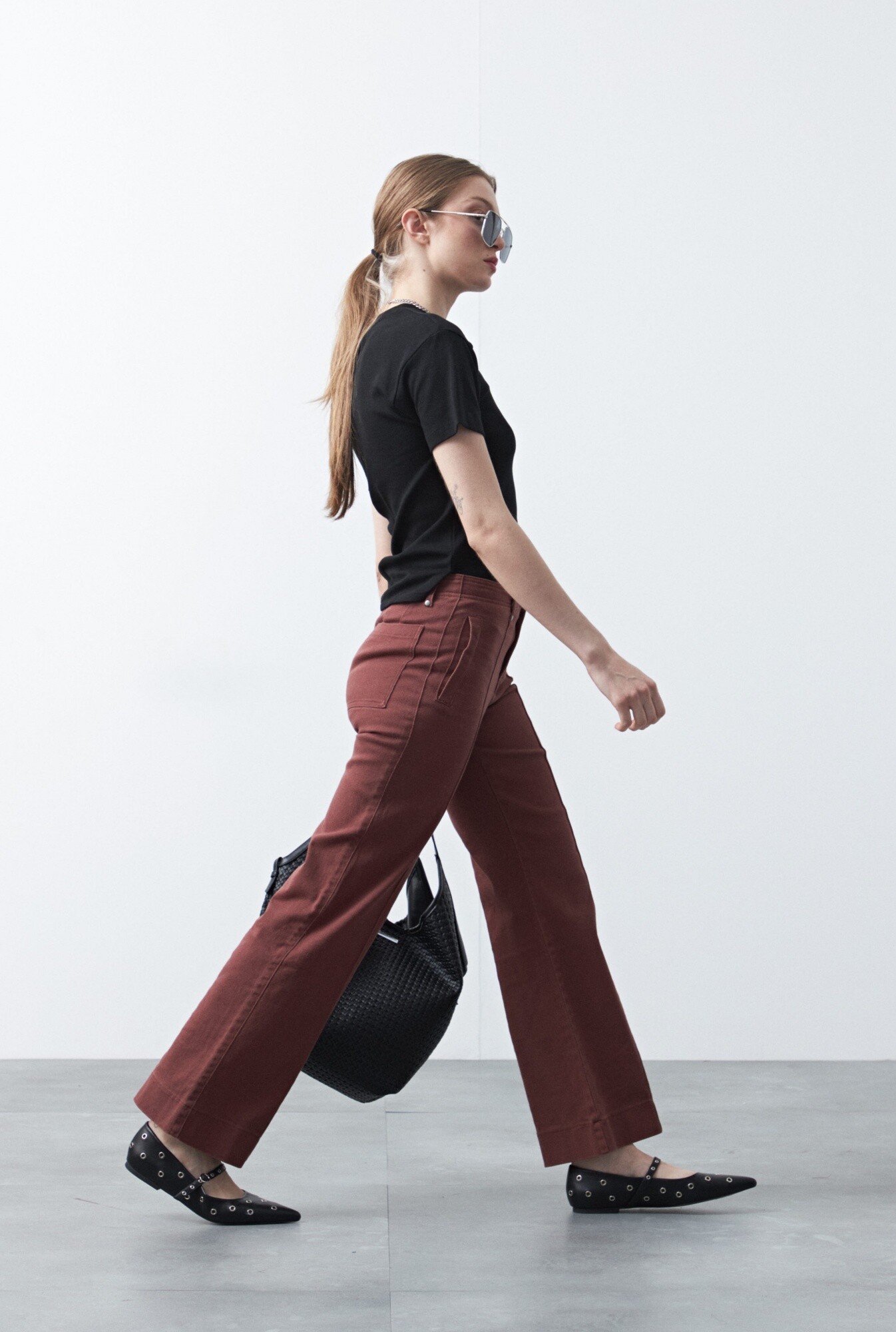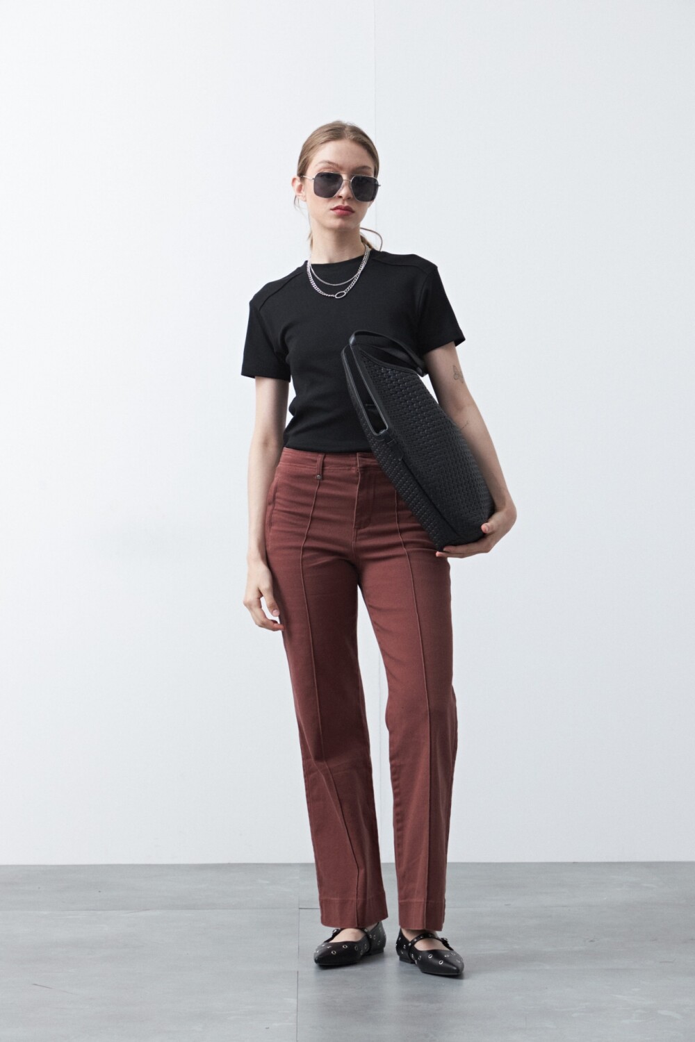 Pantalón de fit recto con silueta clásica y líneas limpias. Su diseño de inspiración atemporal aporta un calce cómodo que acompaña el movimiento sin perder estructura, convirtiéndolo en una opción versátil para looks de día o propuestas más formales.