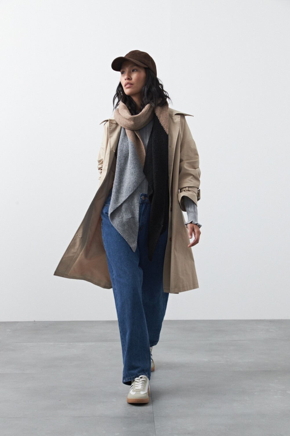 La estructura vertical del tejido realza la caída y acompaña el cuerpo con elasticidad confortable. La mezcla de viscosa con poliéster garantiza suavidad al tacto, buena recuperación y mayor durabilidad, ideal para usar sola o como primera capa bajo abrigos y sastrería. Una pieza versátil, en tendencia, que suma textura y carácter a cualquier look.