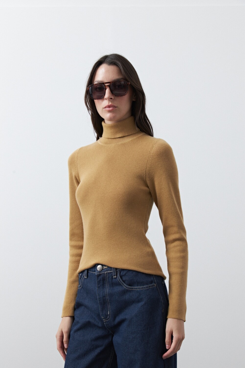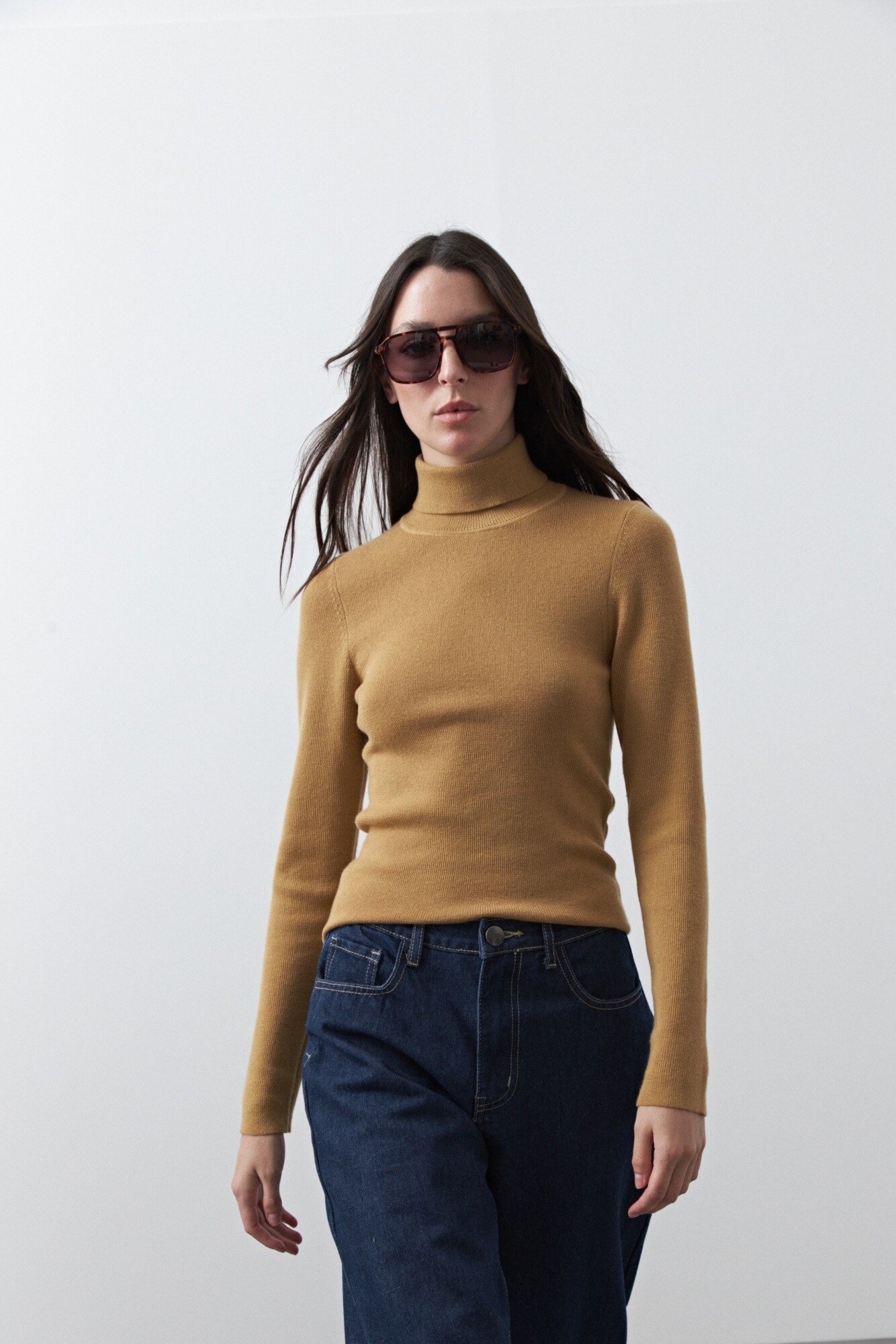 Polera de manga larga y cuello alto ceñida al cuerpo. La base perfecta para cualquier look invernal.