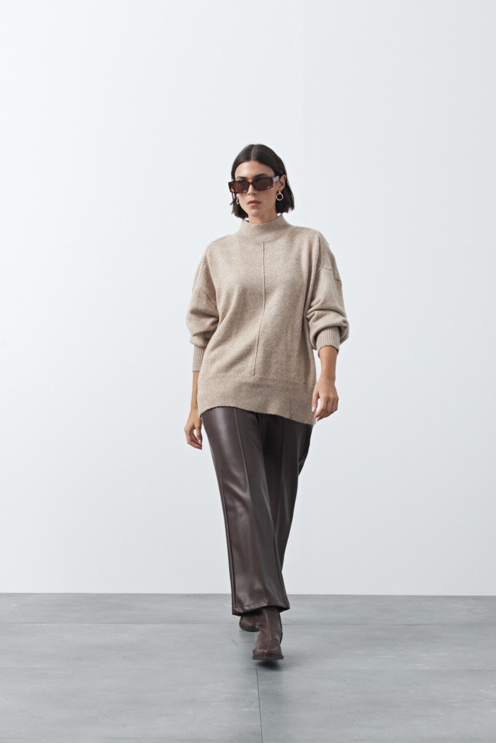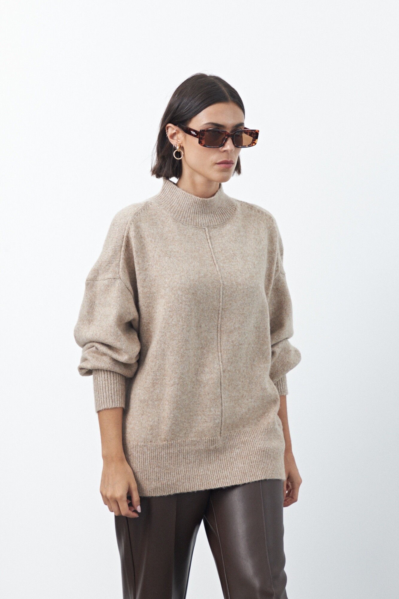 Polera de tejido suave con cuello alto, que combina abrigo y estilo en una silueta relajada. Su diseño se destaca por las mangas abullonadas que aportan volumen y terminan en puños elastizados, generando un equilibrio entre comodidad y detalle.