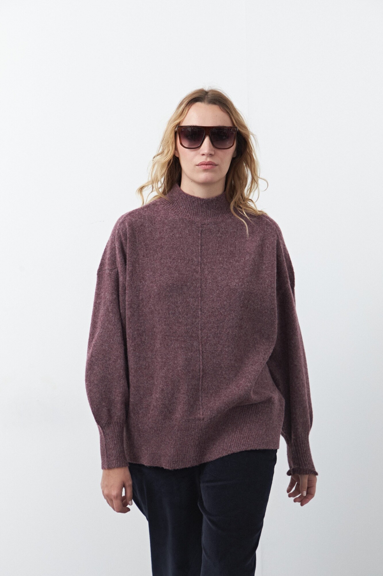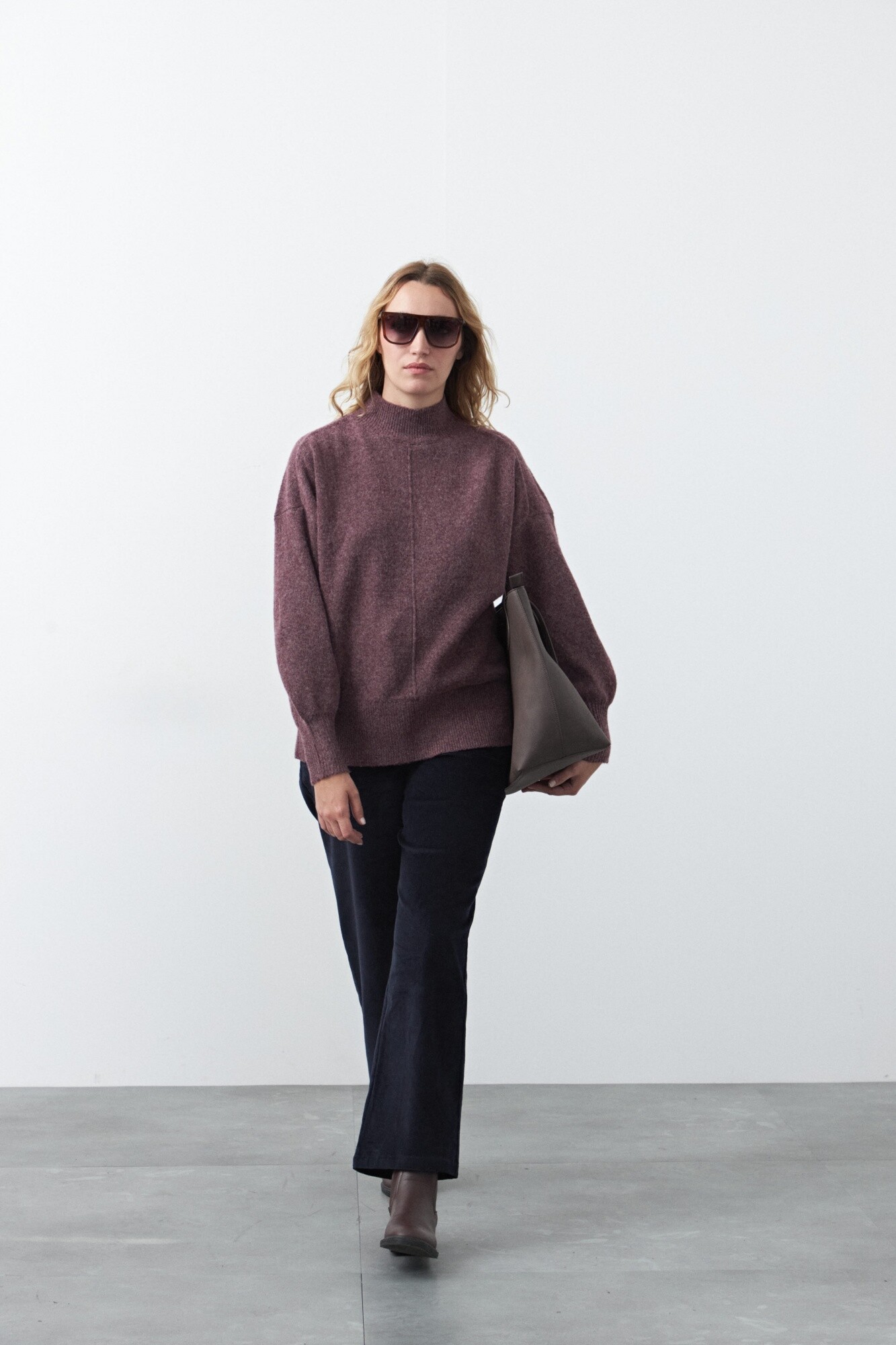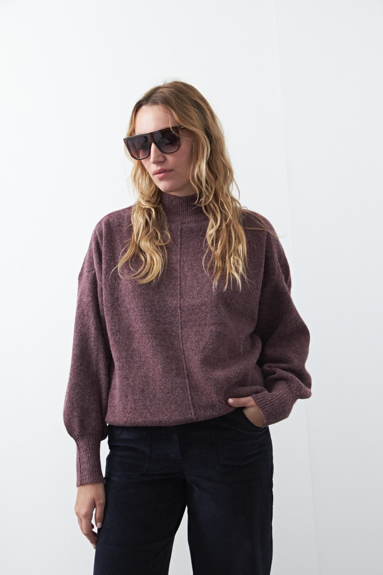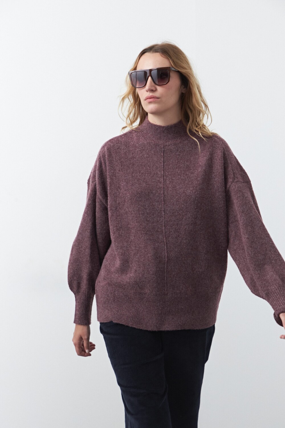 Polera de tejido suave con cuello alto, que combina abrigo y estilo en una silueta relajada. Su diseño se destaca por las mangas abullonadas que aportan volumen y terminan en puños elastizados, generando un equilibrio entre comodidad y detalle.