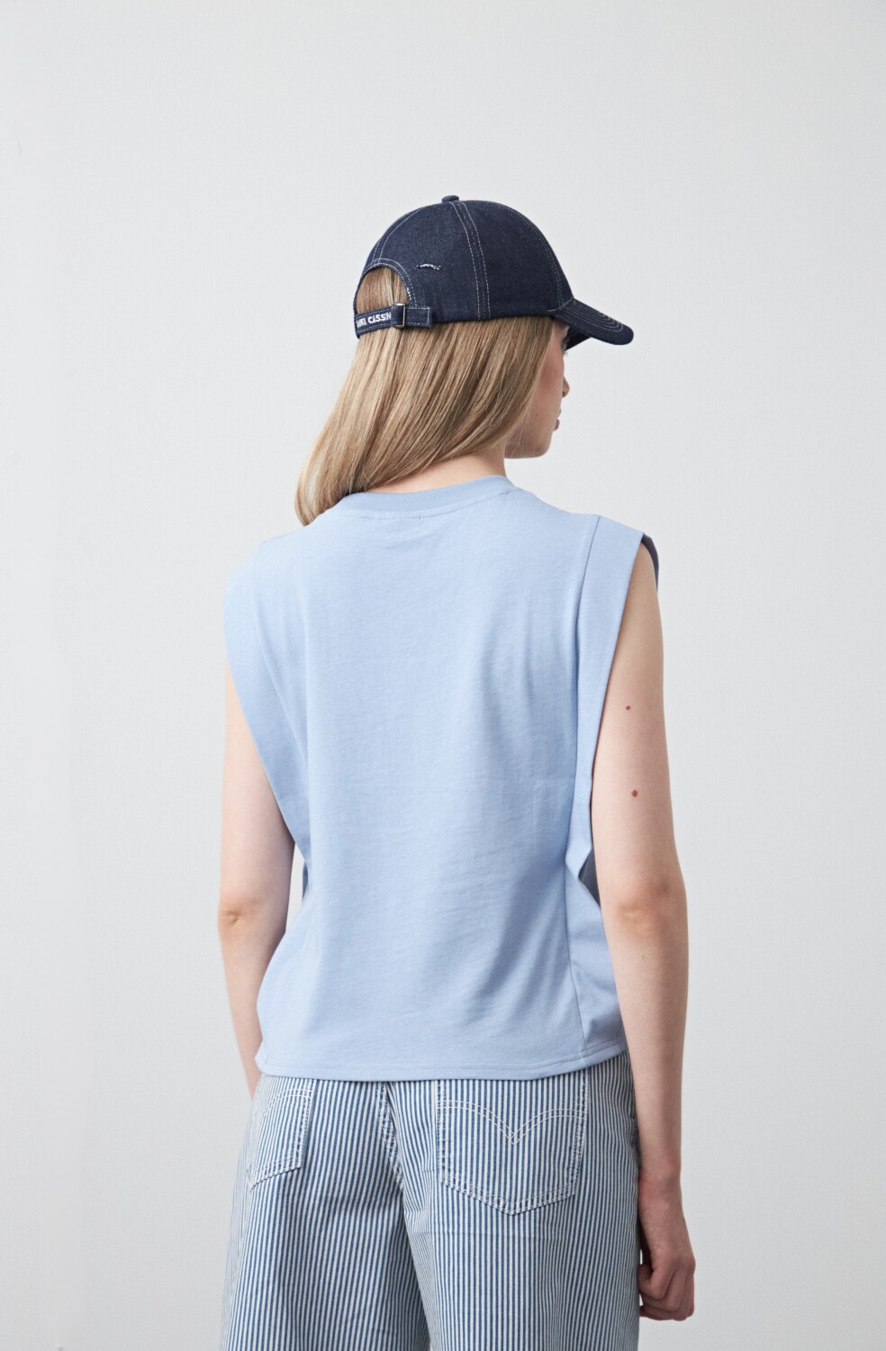 Remera sin mangas de silueta limpia y actitud urbana, una prenda clave que aporta carácter sin esfuerzo. El diseño de hombros marcados y caída recta construye una presencia fuerte y contemporánea, ideal para looks relajados pero con intención. Funciona como base versátil para elevar cualquier outfit, manteniendo un equilibrio entre comodidad y estilo con identidad propia.
