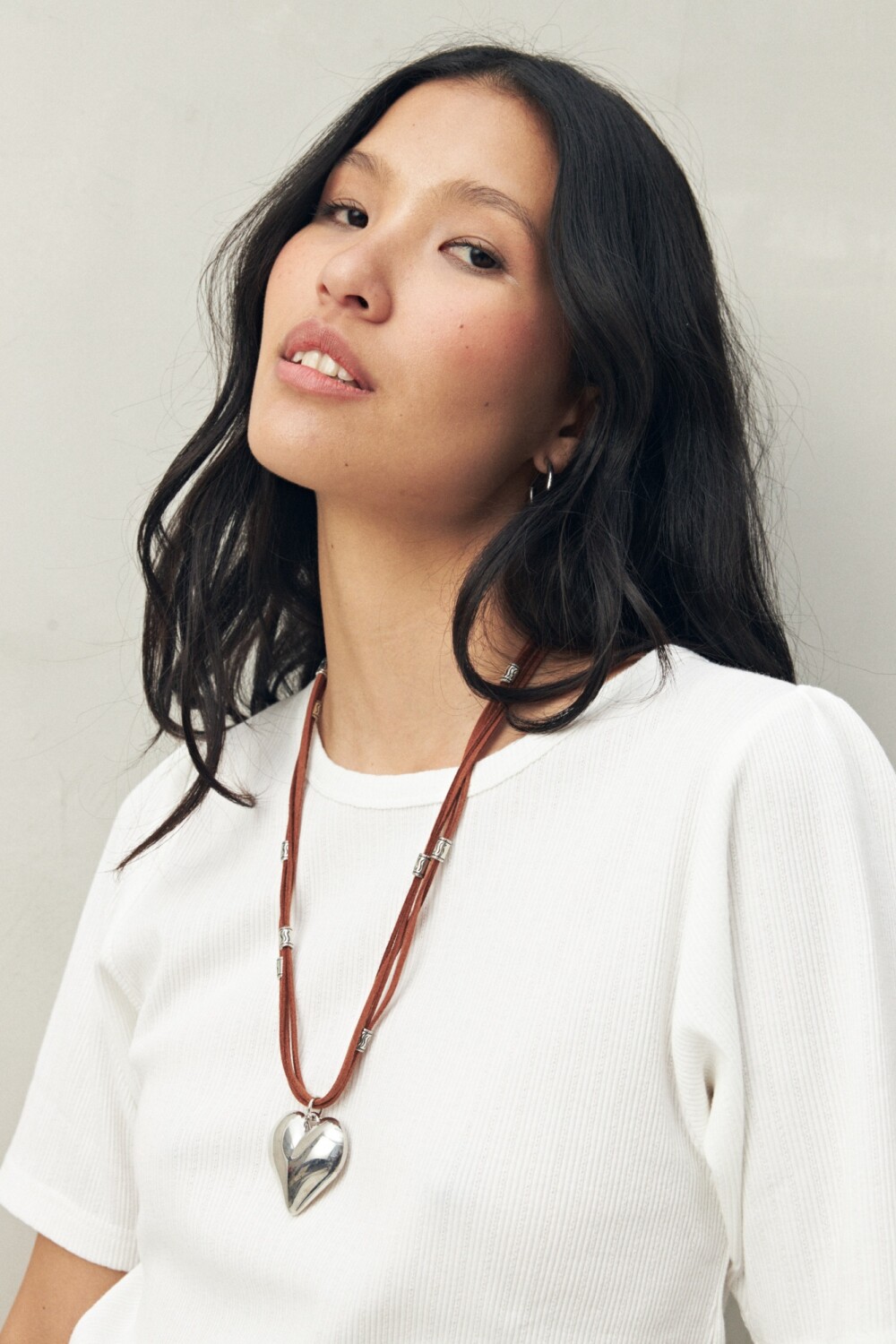Remera de manga corta confeccionada en tejido acanalado suave al tacto. Su diseño clásico con cuello redondo y sutil frunce en los hombros aporta un toque femenino sin perder simpleza. Ideal para acompañar jeans, pantalones amplios o faldas, es una prenda versátil que se adapta a distintas ocasiones con un aire relajado y moderno.