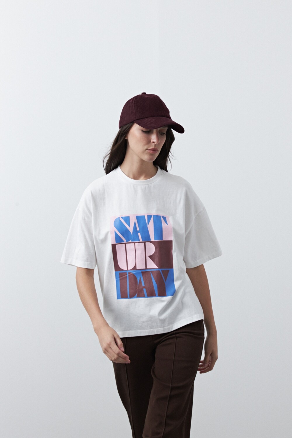 Remera de manga corta boxy fit con estampa, de silueta amplia y caída relajada que aporta un aire moderno y en tendencia. El fit cuadrado suma actitud y comodidad, mientras que la estampa protagonista eleva el diseño y lo convierte en una pieza clave para looks urbanos.