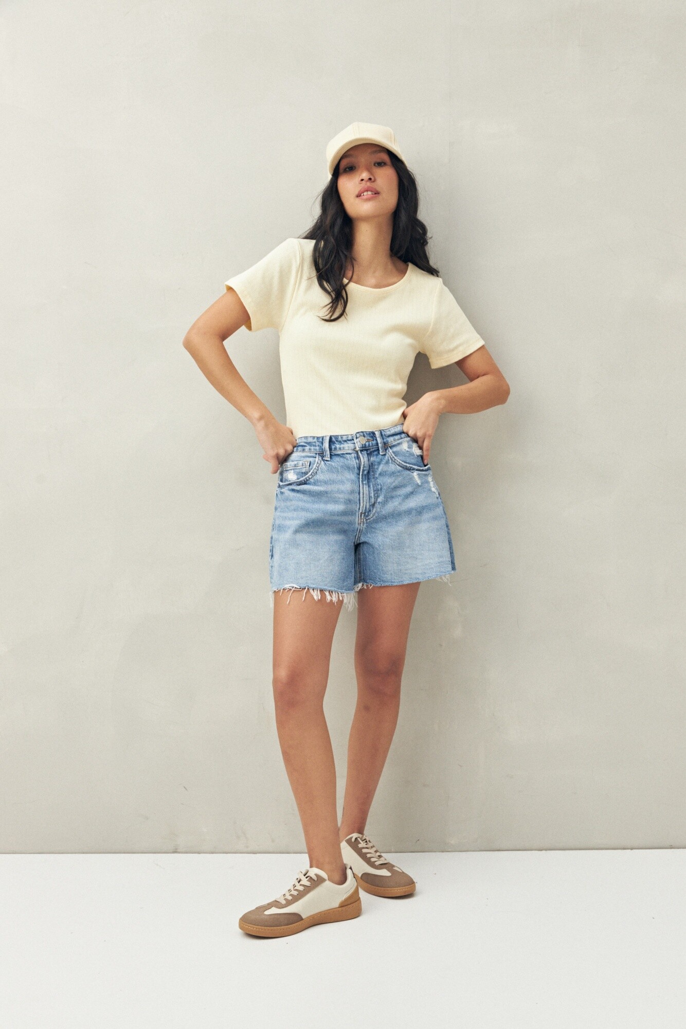 Remera básica de manga corta con cuello a la base, un imprescindible del día a día. Su silueta simple y atemporal se adapta a cualquier look, funcionando como prenda protagonista o en capas. Gracias a su tejido de punto suave y respirable, ofrece comodidad y practicidad en cada uso.